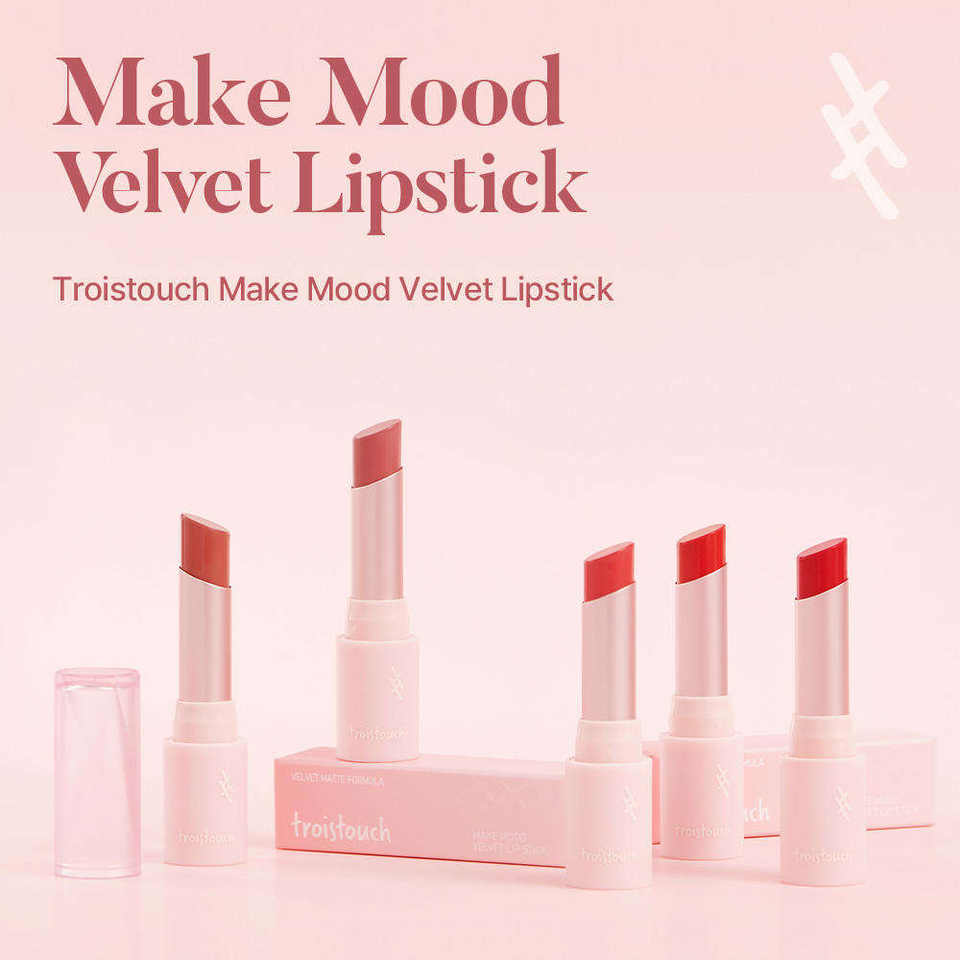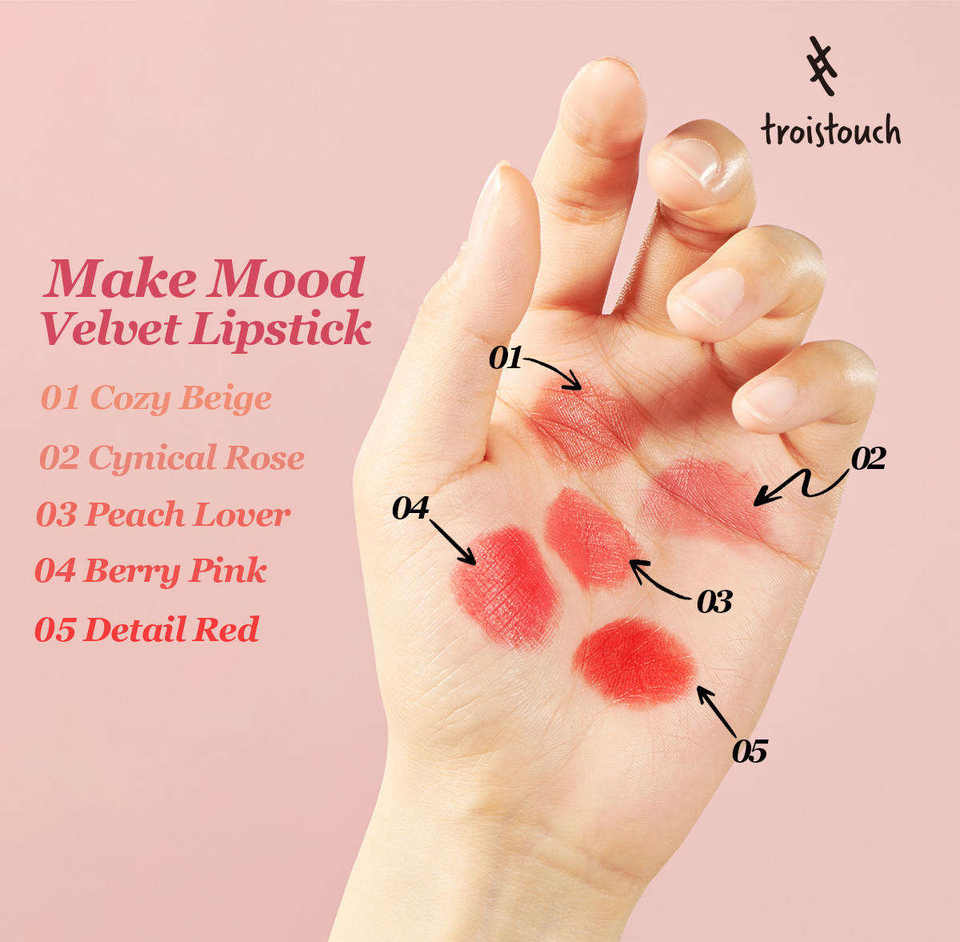Lápiz Labial Troistouch Make Mood Velvet 02 Cynical Rose, Color Mate de Larga Duración, Hidratante, con Acabado de Pigmento Rico
