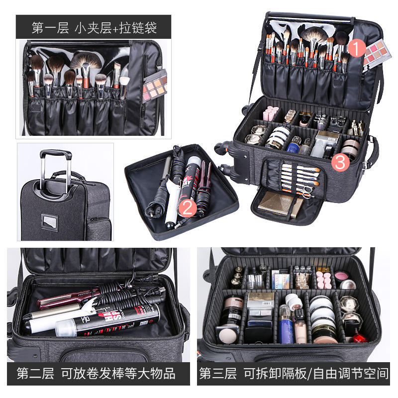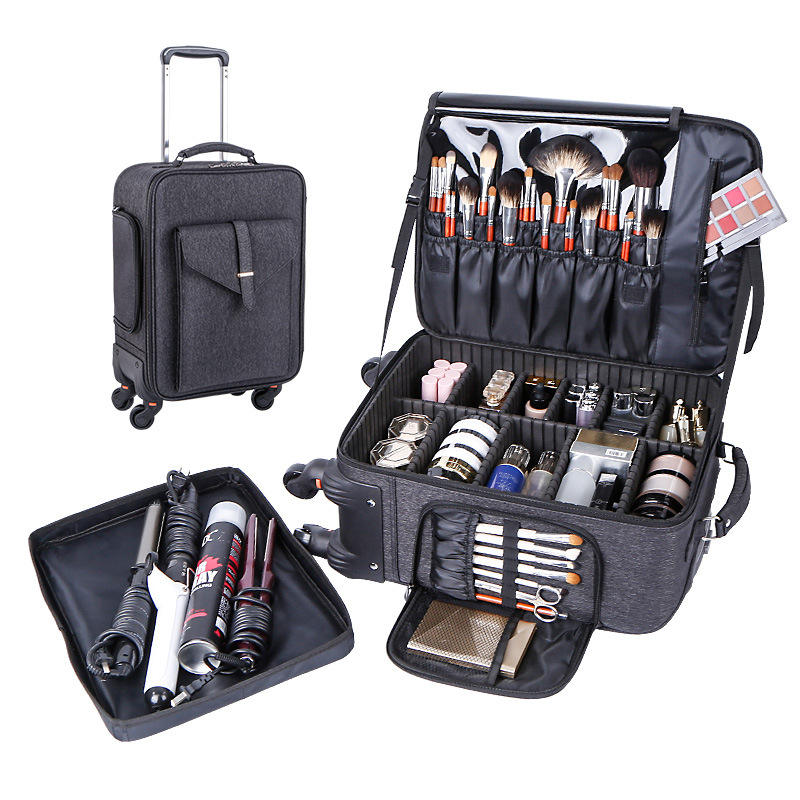 Maleta de Maquillaje con Ruedas, Gran Capacidad, Multifuncional, para Estilistas, Uñas, Tatuajes, con Ruedas Universales