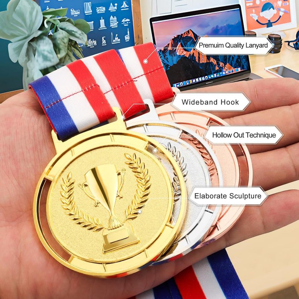 Medallas de Metal Personalizadas para Trofeos Tradicionales, con Cinta Lisa, Venta al por Mayor en Oro, Plata y Bronce para Competiciones Deportivas, Ceremonias de Premiación y Fiestas