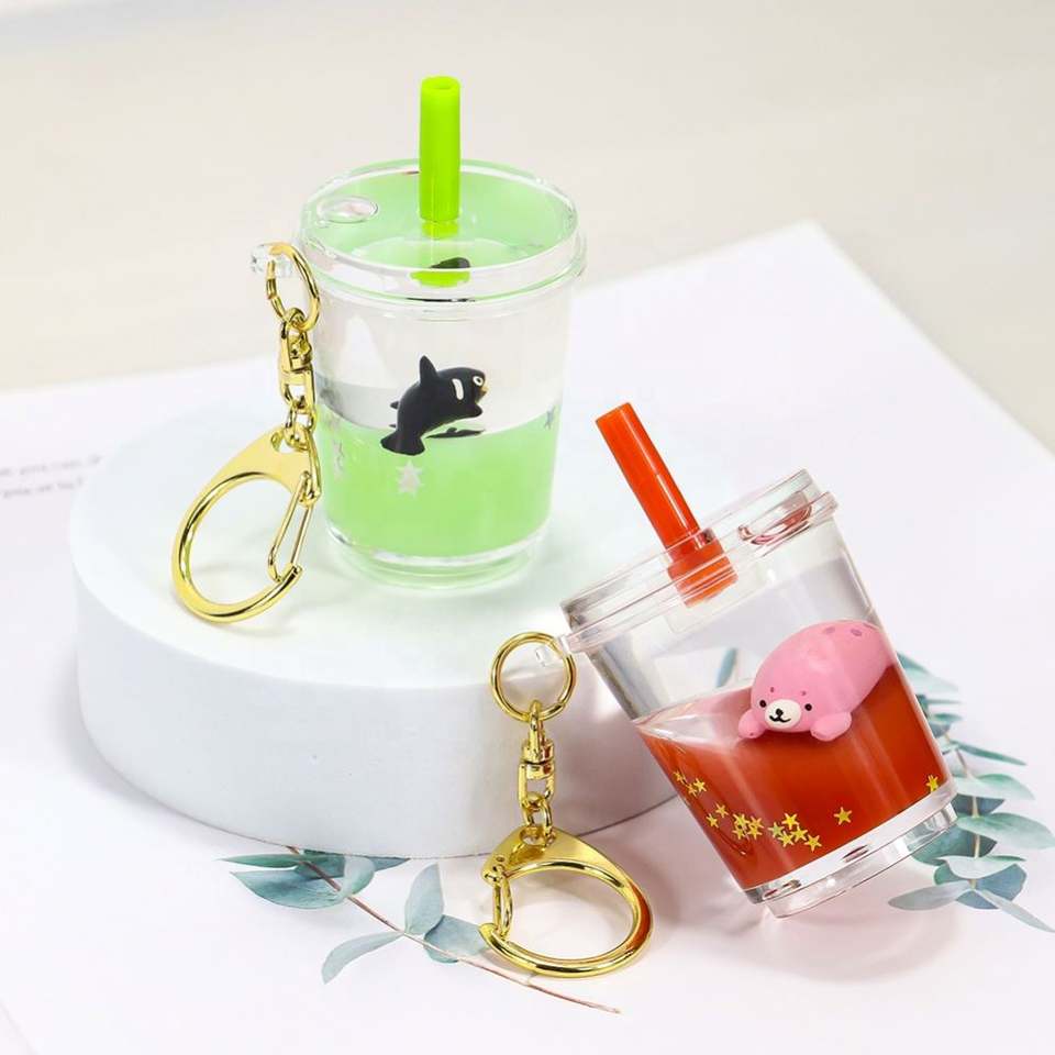 Trópico líquido flotante agua flotante tapioca perla Boba burbuja leche té taza bebida flotador Aqua acuario brillo llavero