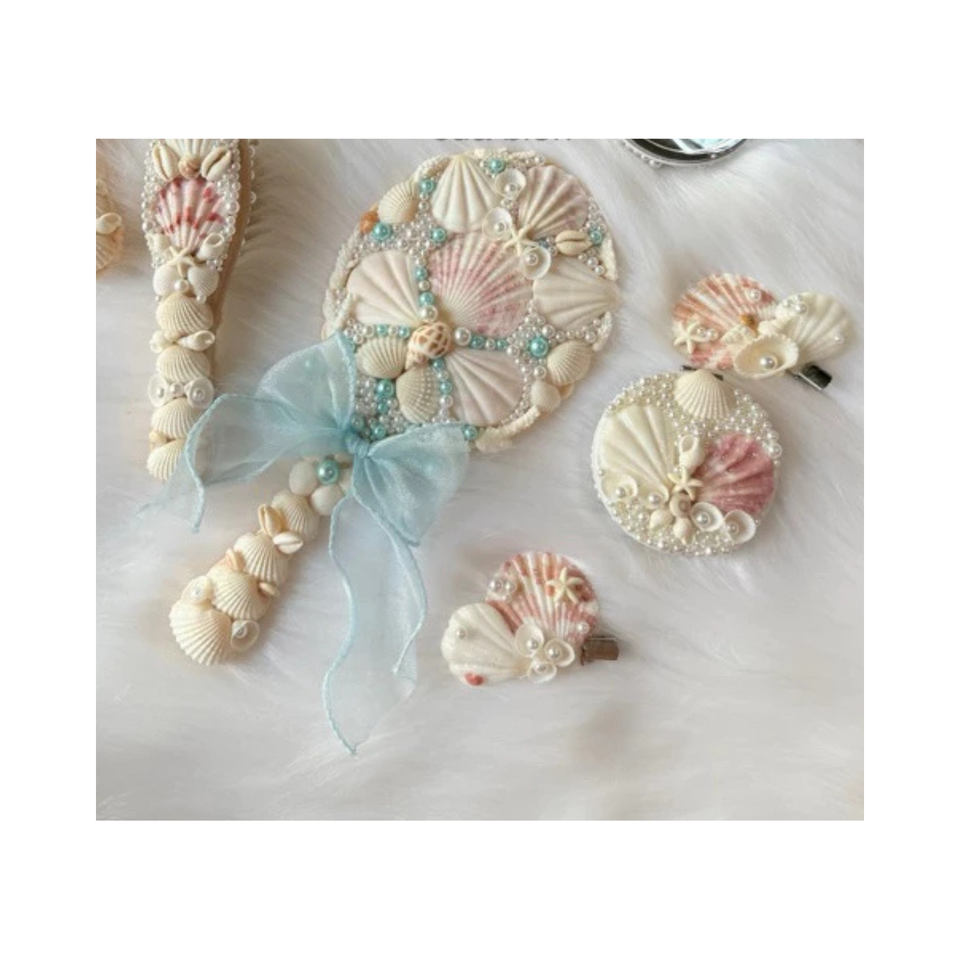 Materiales:Conchas marinas, espejo de cristal, cinta.