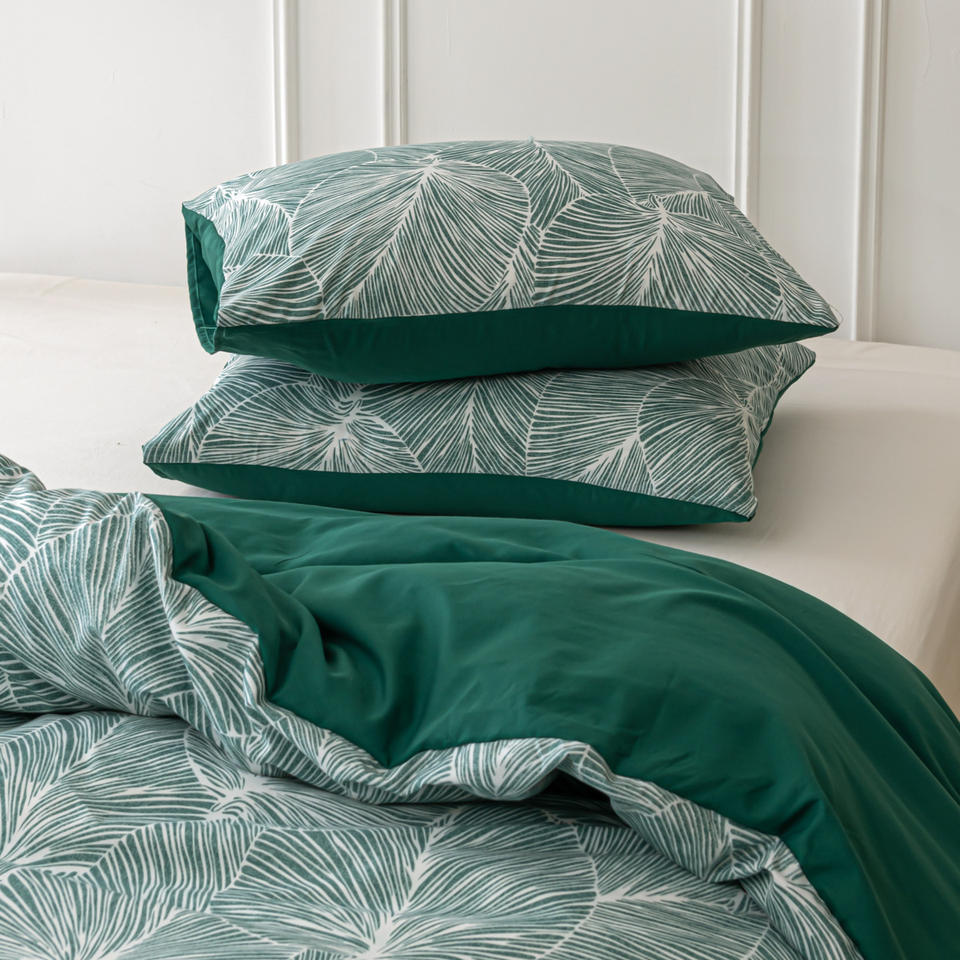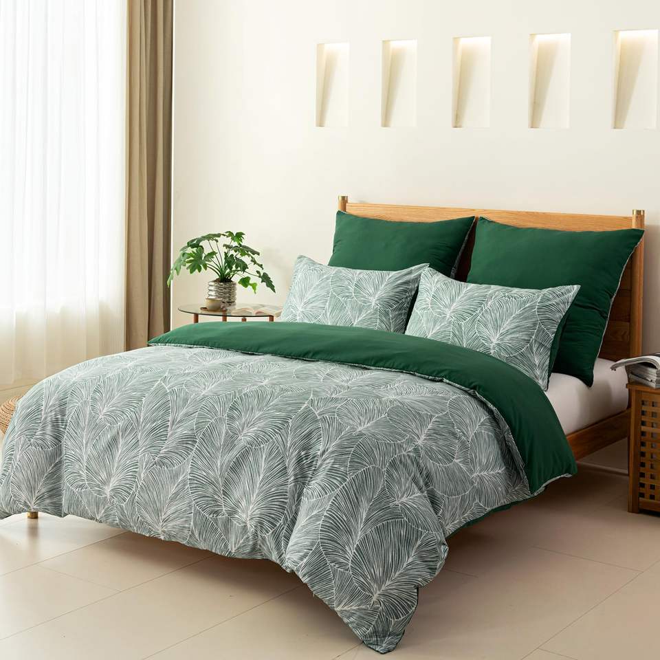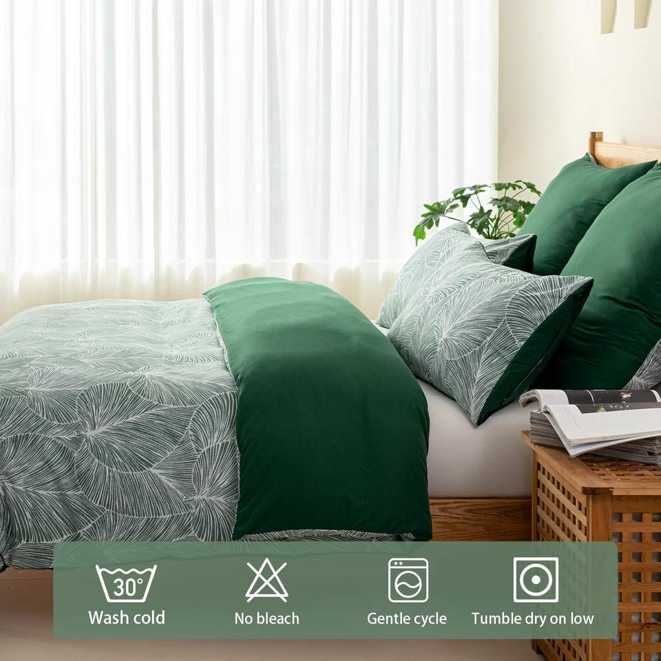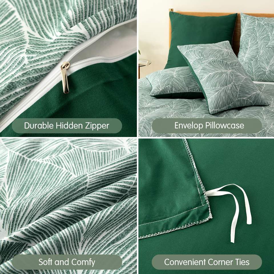 Patrón de hojas tropicales 3 piezas Funda nórdica verde Juego de cama de microfibra de poliéster 100% suave con 2 fundas de almohada
