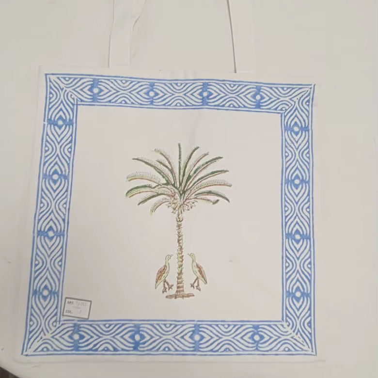 Bolso Tote de Lona de Algodón Hecho a Mano con Cadena y Diseño de Palmera Tropical, Bolso de Hombro con Borde Geométrico, Ecológico para Compras