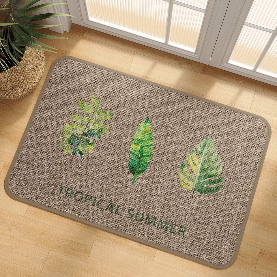 Alfombra de Baño con Diseño de Hojas Tropicales de Verano, Imitación Lino, Rectangular, Antideslizante, para Uso Doméstico