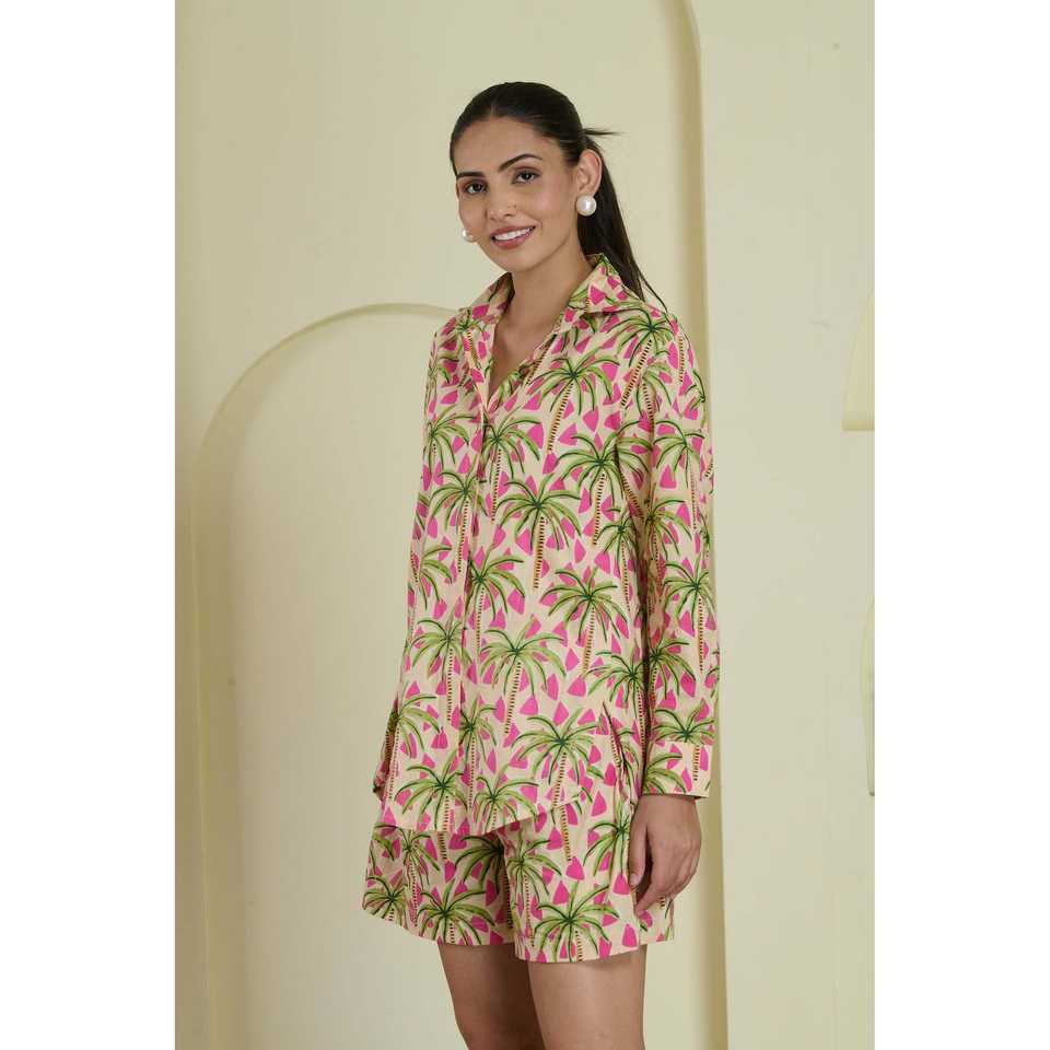 Conjunto de Dos Piezas de Tela Oxford Transpirable de Algodón Tropical Tango, Estampado Floral, Talla XS, Uso Diario, Top de Manga Tres Cuartos, Pantalones Cortos hasta la Rodilla