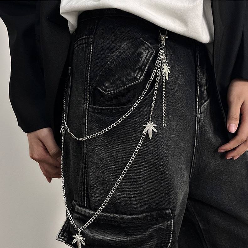 Cadena para Pantalones con Colgante de Hoja de Arce, Accesorio de Cintura de Aleación de Doble Capa para Estilo Hip Hop, Primavera 2025