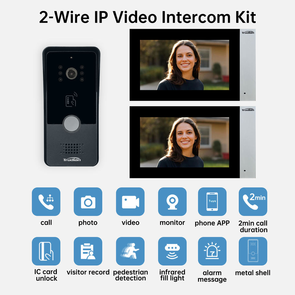 Trudian 7 pulgadas Video puerta teléfono Tuya Ip65 impermeable 2 vías Audio IP Video portero intercomunicador timbre sistema Kit con 2 monitores