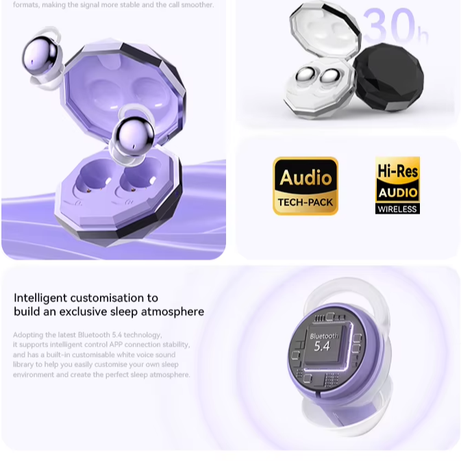 Auriculares inalámbricos verdaderos TWS Mini Auriculares portátiles con cancelación de ruido para dormir Auriculares LED impermeables invisibles Auriculares inalámbricos
