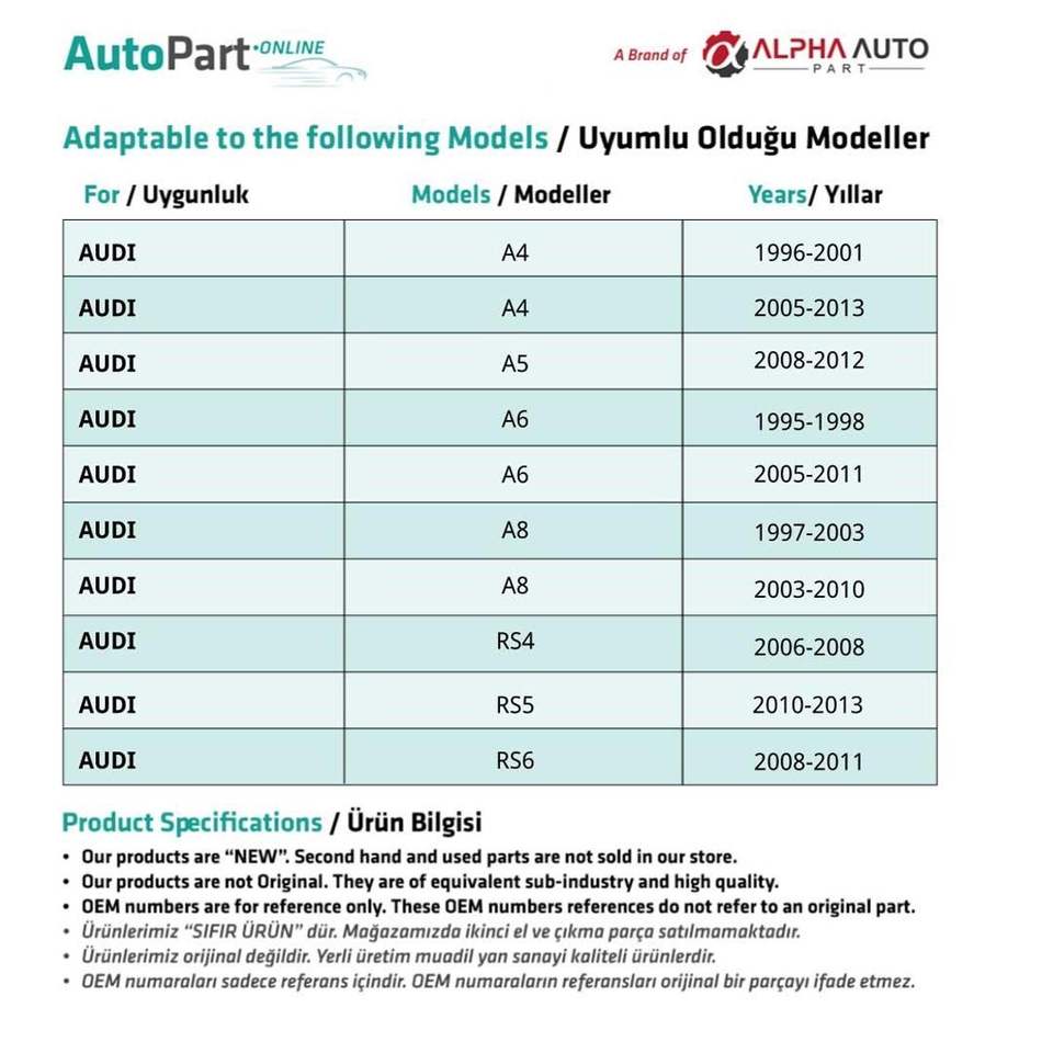 Engranaje de bloqueo de maletero para Audi A4, RS4, A5, A6, A8 (envío desde el fabricante de Turquía) Código de producto: FD113118