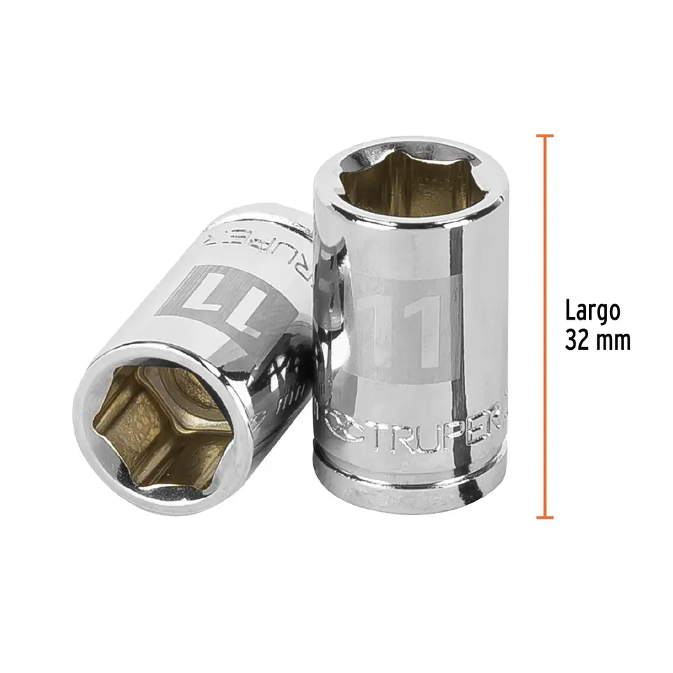 Juego de enchufes Truper de 3/8 'con 6 unidades de 11 mm Dado y 6 puntos en una práctica caja de 6 piezas