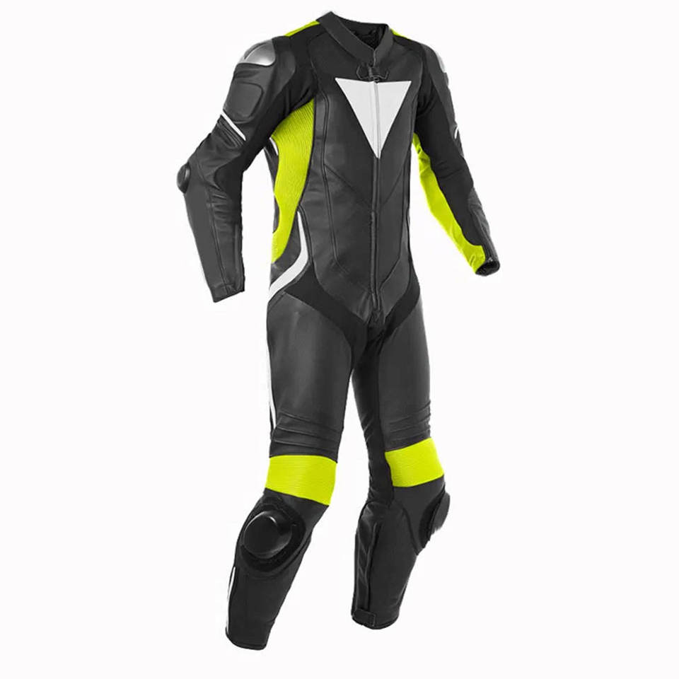 Confíe en la seguridad en la carretera y el estilo con este traje de motocicleta de cuero de dos piezas. Eleva tu espíritu aventurero con este traje de motocicleta de cuero.