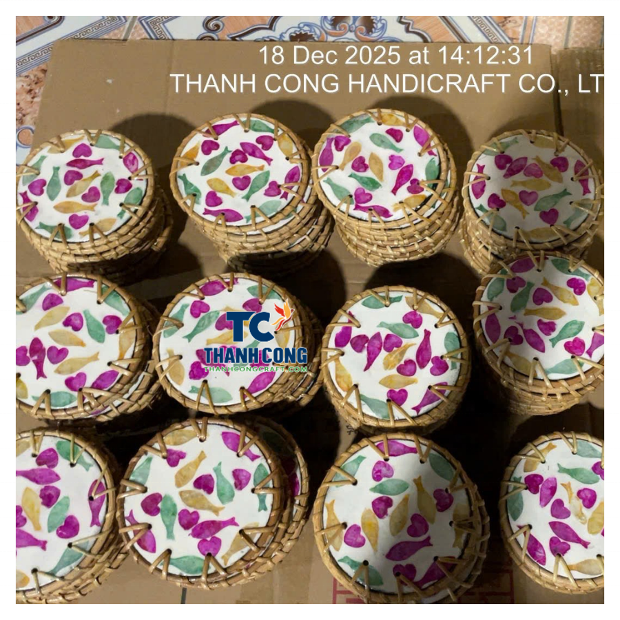 Proveedor confiable de vajilla premium, colección de posavasos de ratán con refinados posavasos redondos de ratán para distribuidores en Vietnam.