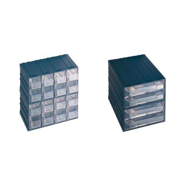 Unidad de Almacenamiento con Cajones Ttake Label Cab, 20.8x22.2x20.8 cm, Gris Oscuro, Material PP Transparente, 4 Cajones, 8 Niveles, Apilable