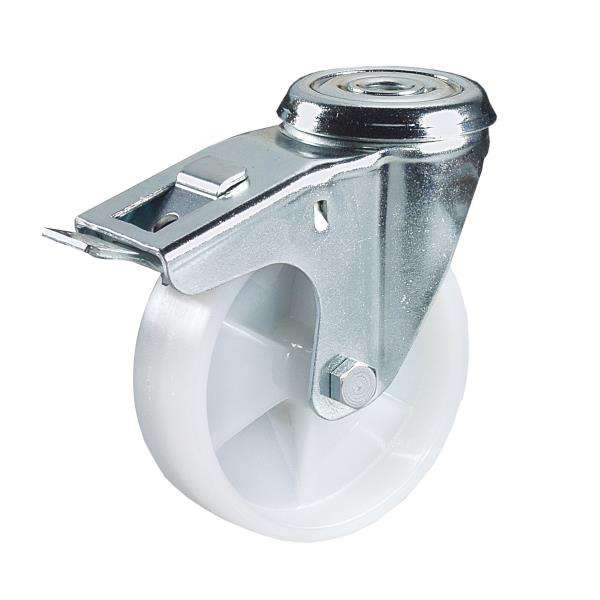 Rueda de Poliamida Monolítica Ttake de 2.0 mm con Freno de Bloqueo Total de Acero Galvanizado, Rodamiento de Bolas y Banda de Rodadura Transparente y Firme