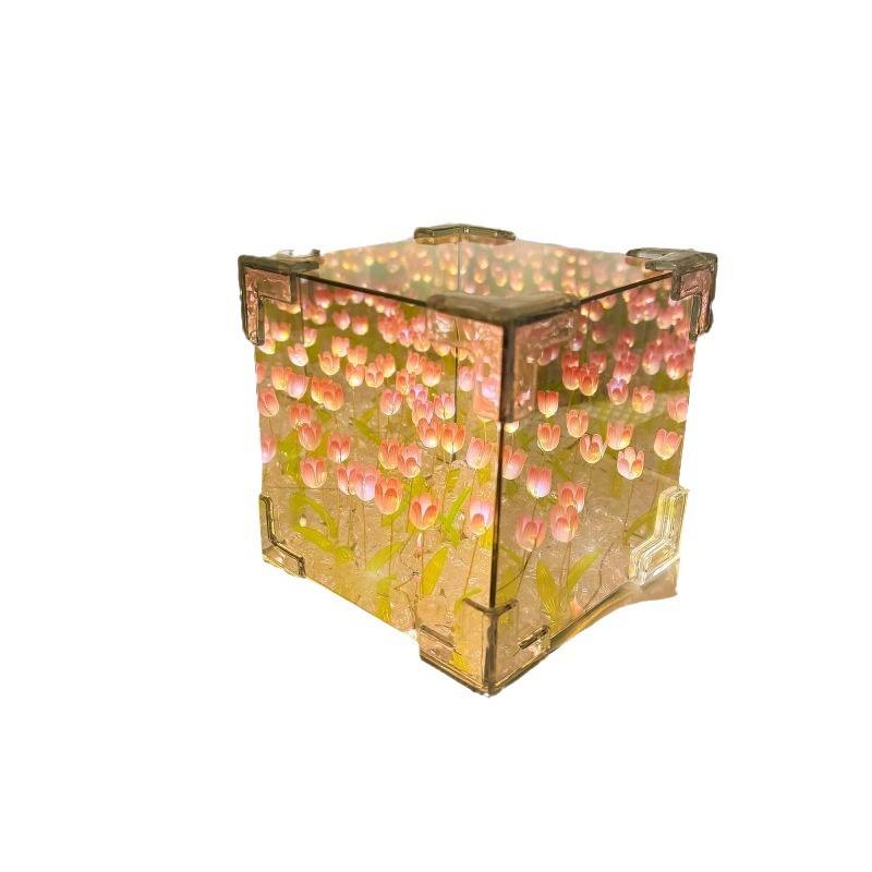 Tulip Night Light Rubik's Cube Hecho a mano DIY Materiales Rosas para novias Regalos Tulip Flower Lámparas de mesa