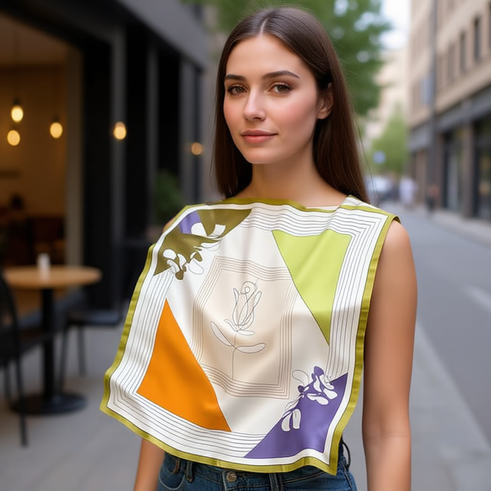 Pañuelo cuadrado pequeño con estampado de tulipanes, 70x70cm, 38g, mezcla de seda, accesorio de moda para mujer