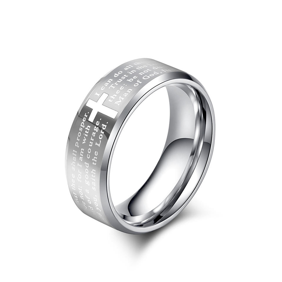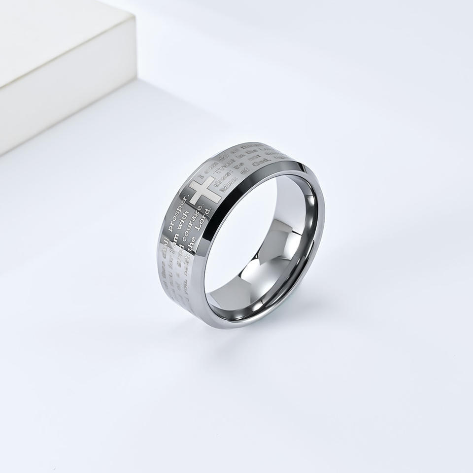 Anillo de Acero de Carburo de Tungsteno con Cruz Grabada, Anillo Religioso de Boda para Hombre, Negro, 8mm