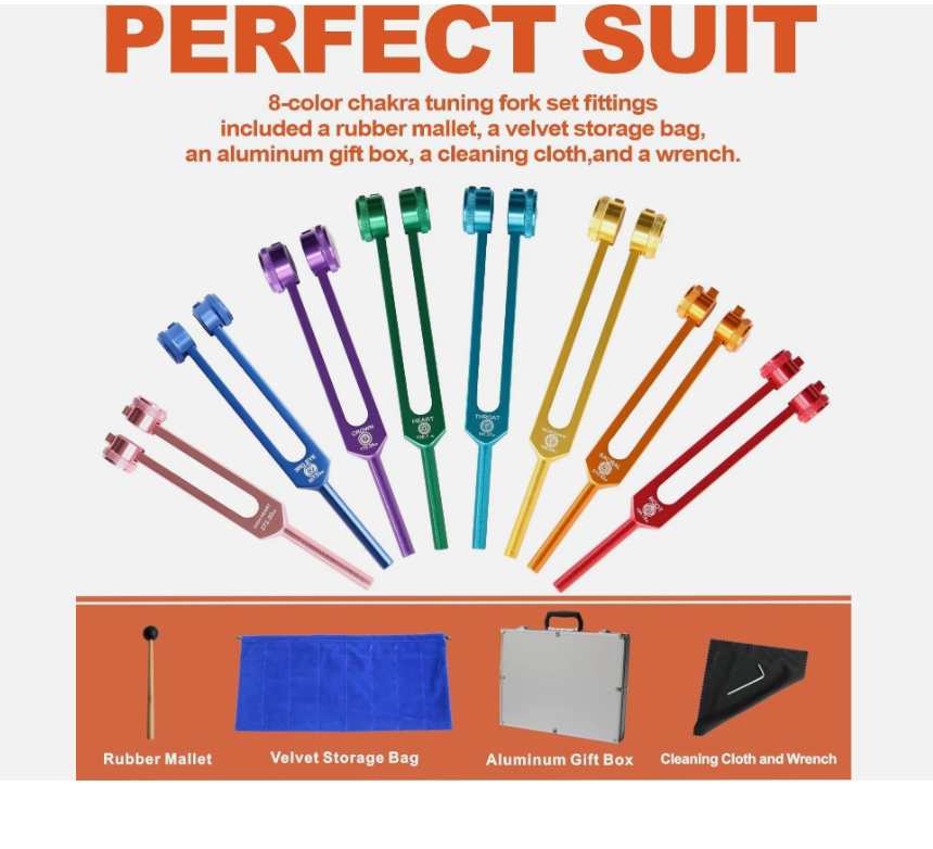 Diapasones para Sanación de Chakras, Juego de 8 Diapasones Ponderados de Colores, Inc.