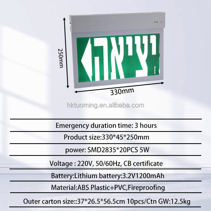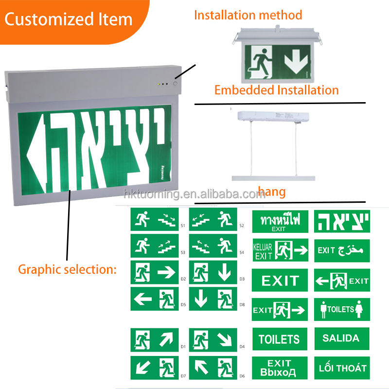 Nombre del producto:Letrero de Salida de Emergencia con Luz LED de Fuego 2835 Montado en Pared de Plástico