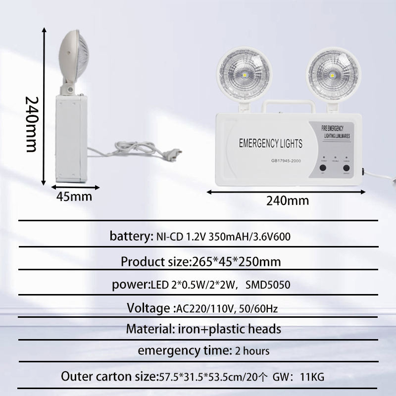 Luz de Emergencia Tuoming para el Hogar, Alta Luminosidad, Plástico, Modo DC, Doble Faro LED, Luz de Emergencia Twinspot