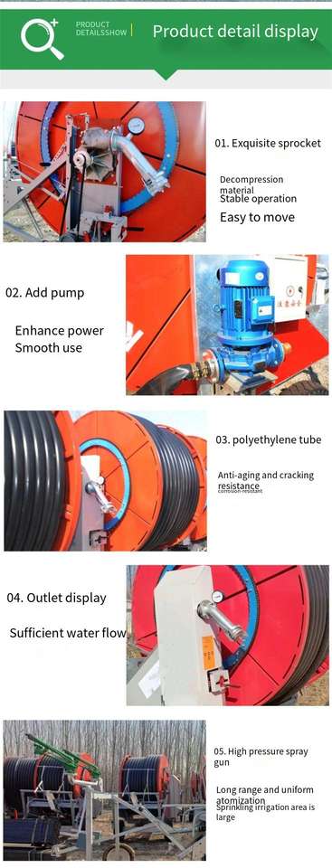 Irrigador de turbina con pluma telescópica y pistola de lluvia para viñedos y huertos frutales