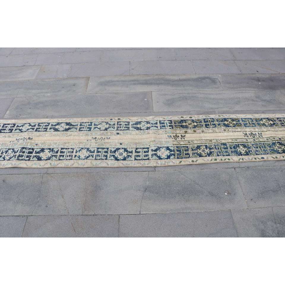 Alfombra Turca de 1.7x11.6 pies, Alfombra Vintage, Alfombra Azul Ombré de Lana