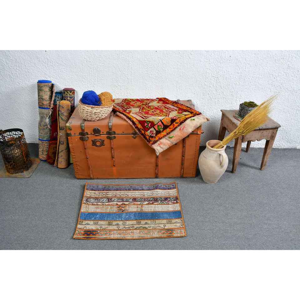 Alfombra Turca de 1.7x2.3 pies, Alfombra Vintage, Alfombra de Lana con Puntos Azules
