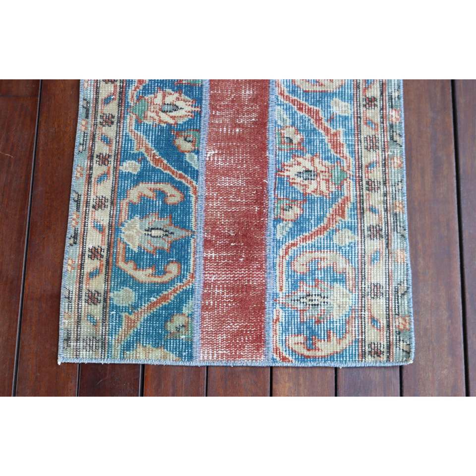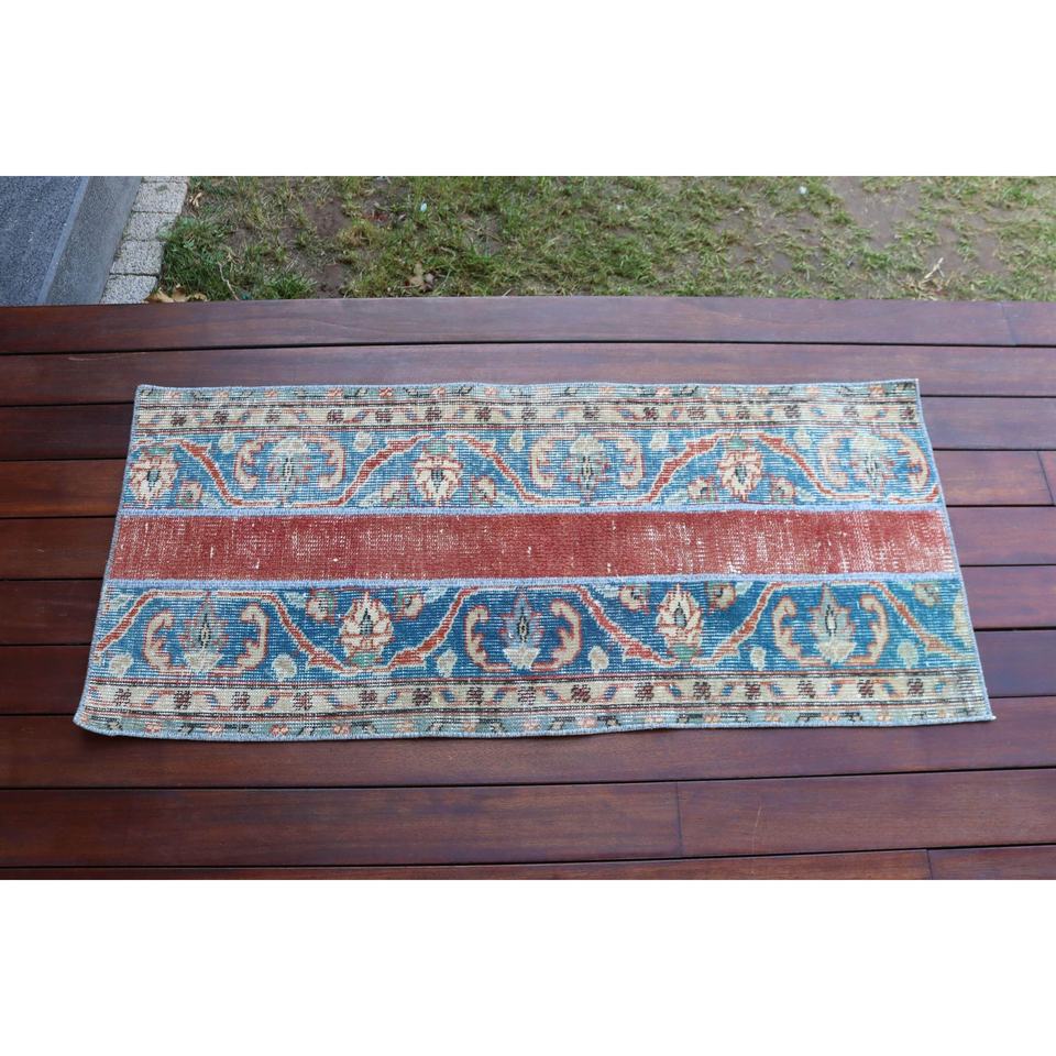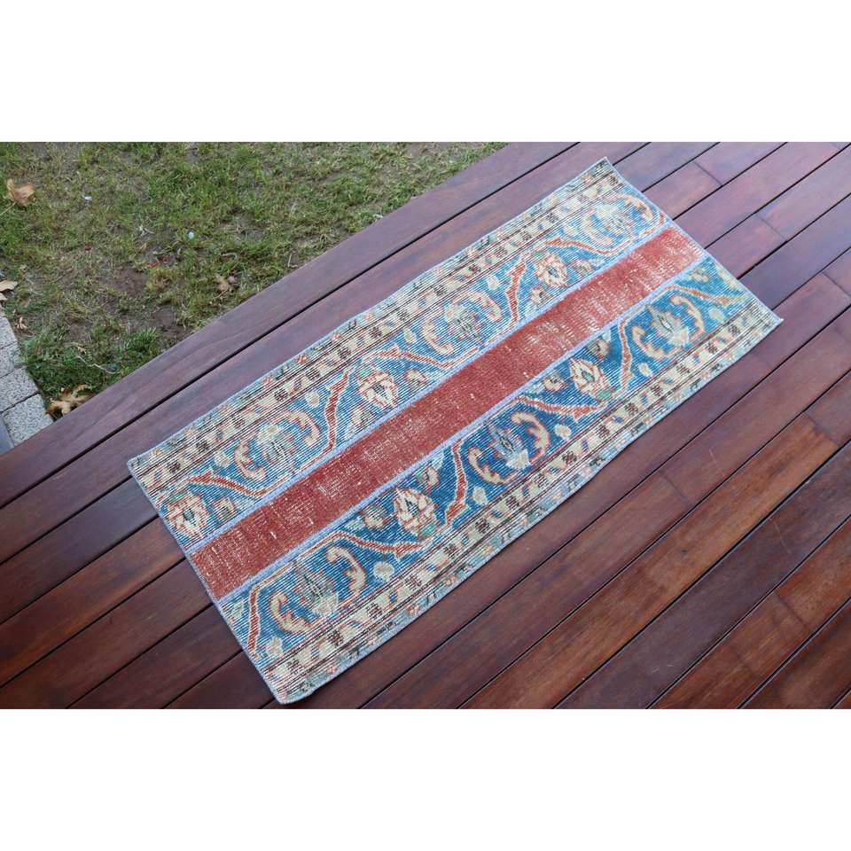 Alfombra Turca de 1.7x3.8 pies, Alfombra Pequeña Vintage, Alfombra Azul Sólida