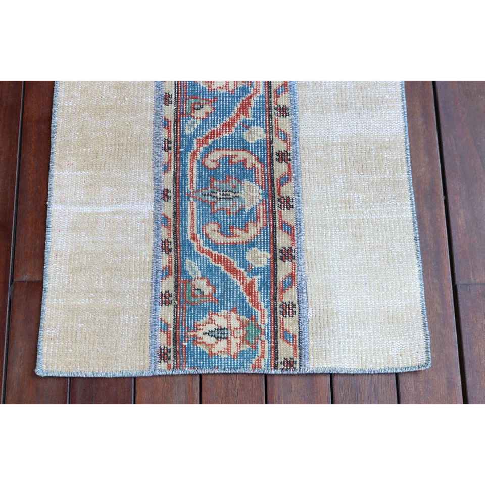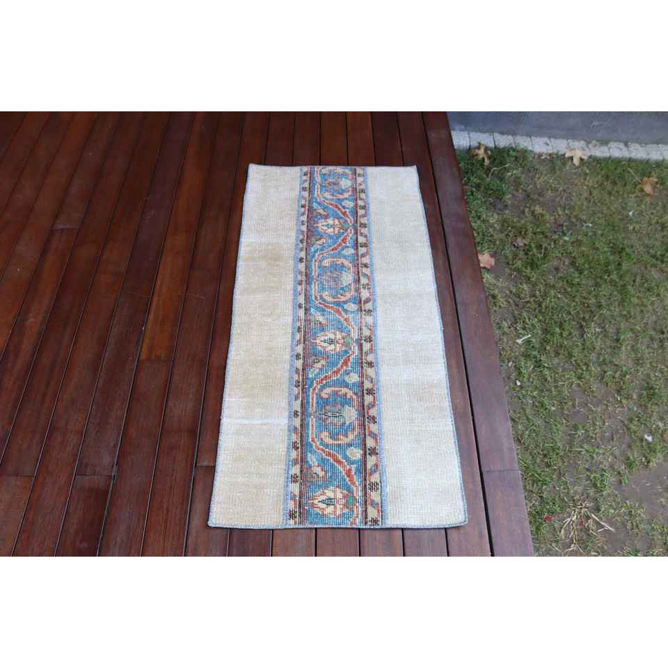 Alfombra Turca de 1.8x3.9 pies, Alfombra Pequeña Vintage, Alfombra de Lana con Diseño Floral Azul