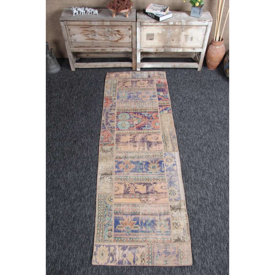 Alfombra Turca de 2.3x7.2 pies, Alfombra Pequeña Vintage, Alfombra de Lana con Diseño de Arcoíris