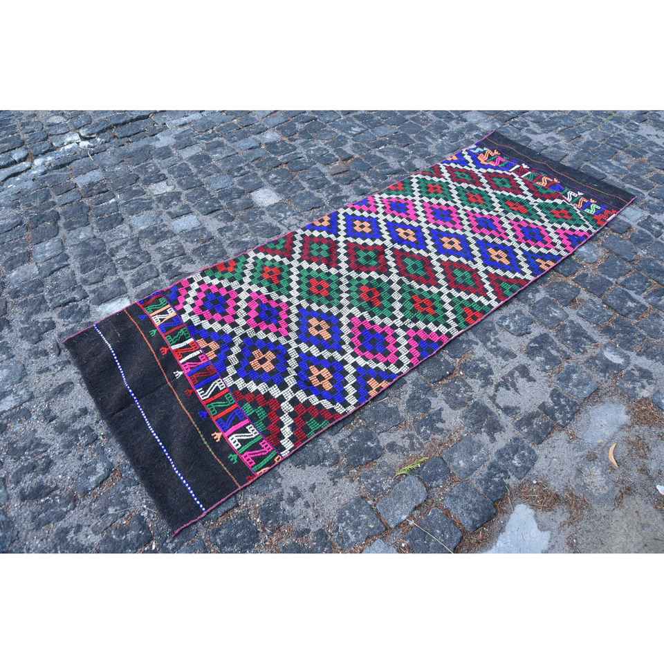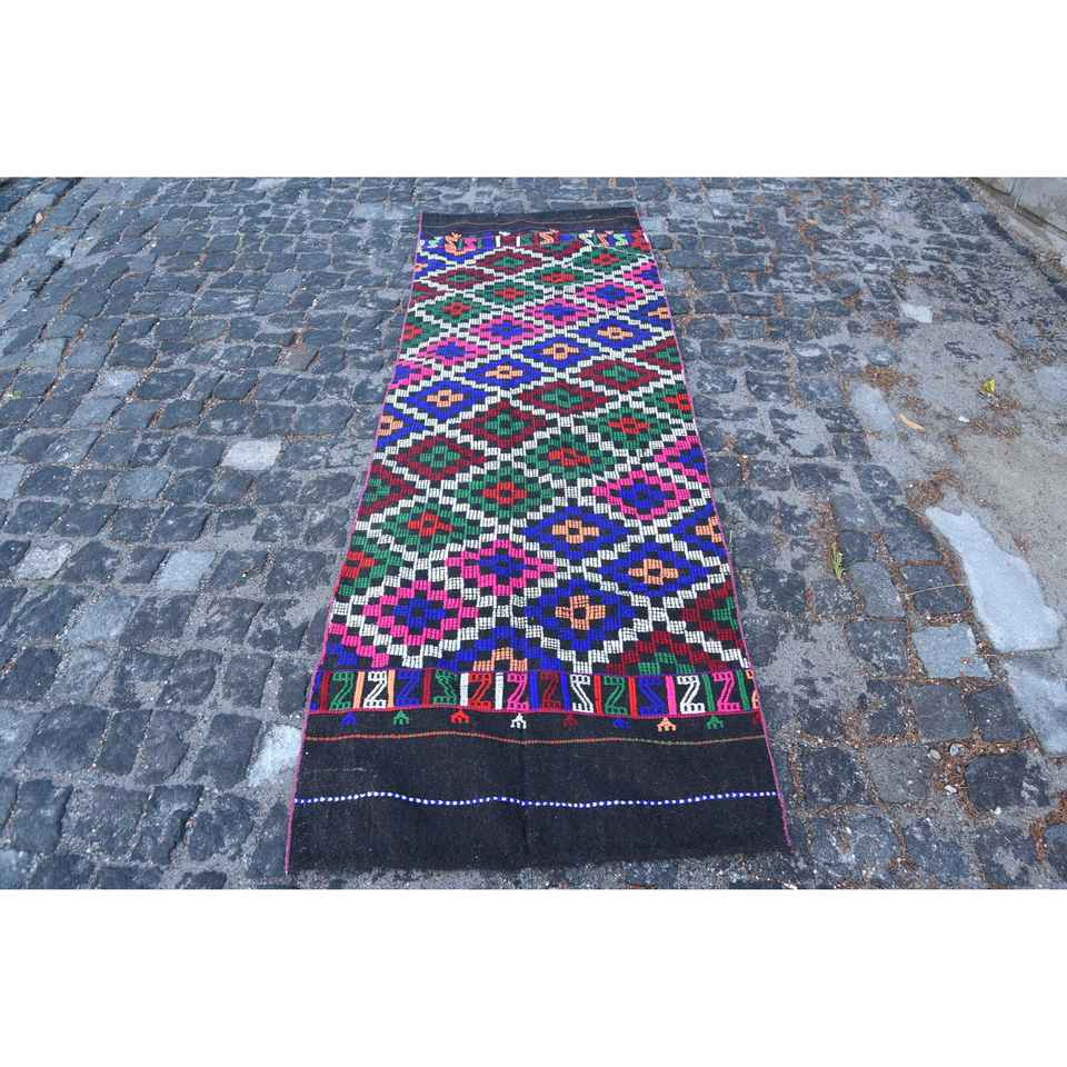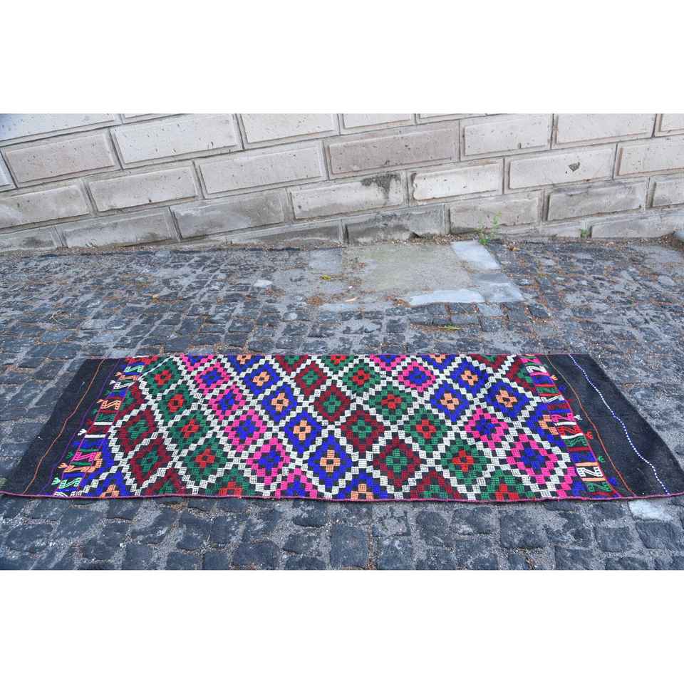 Alfombra turca de 2.5x7 pies, alfombra vintage, alfombra Kilim con diseño de plantas y árboles azules