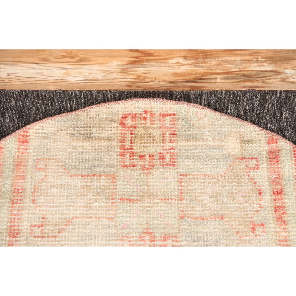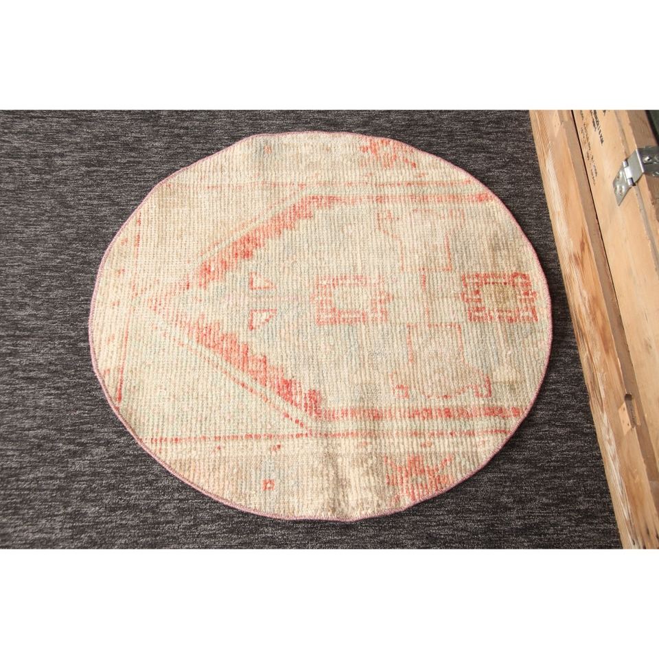 Alfombra Turca de 2.6x2.6 pies, Alfombra Redonda Vintage, Alfombra Geométrica Beige y Roja