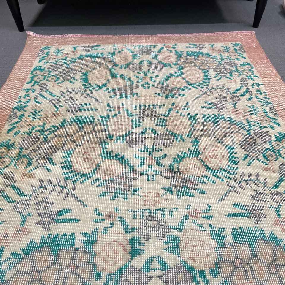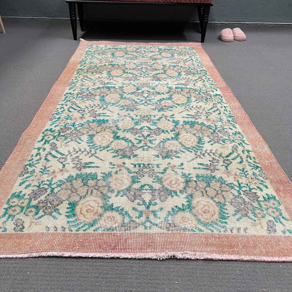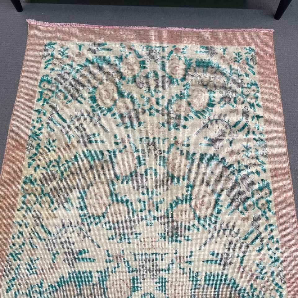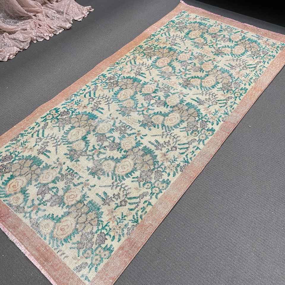 Alfombra Turca de 3.3x6.9 pies, Alfombra Vintage Decorativa, Alfombra Azul de Lana Marroquí