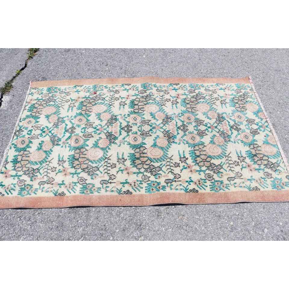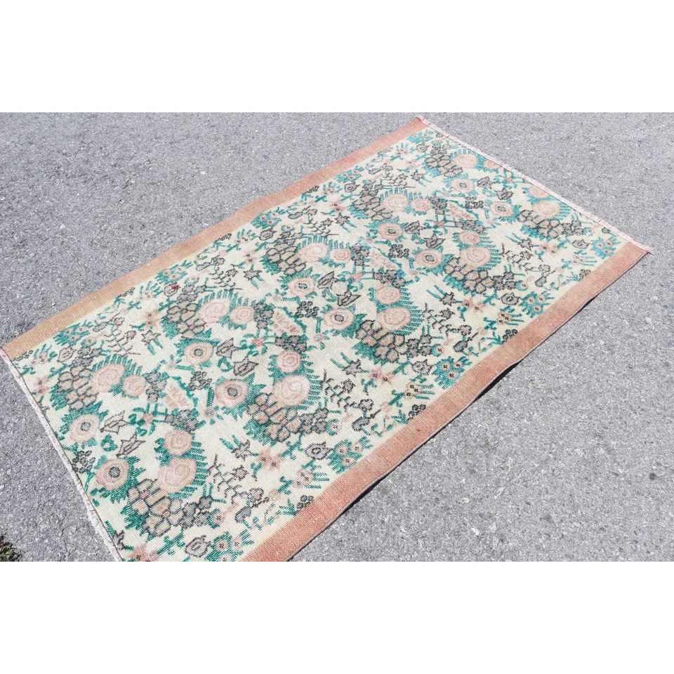Alfombra Turca de 3.5x5.7 pies, Alfombra de Estilo Vintage, Alfombra de Camuflaje Azul