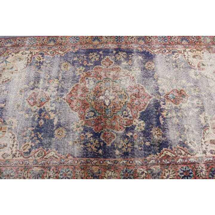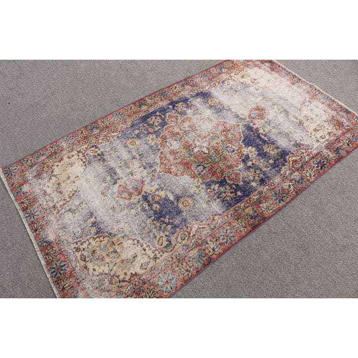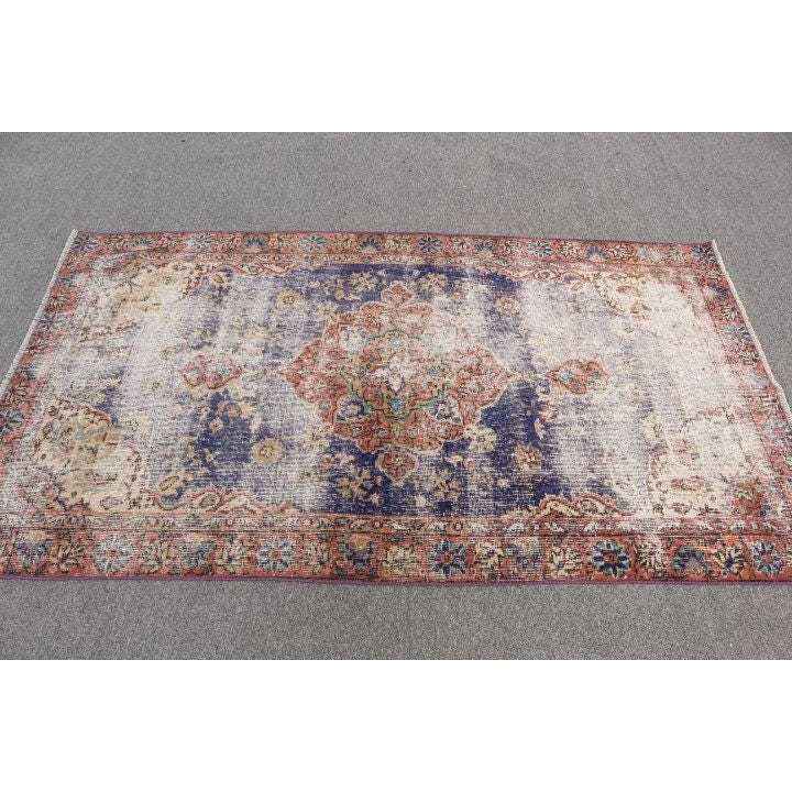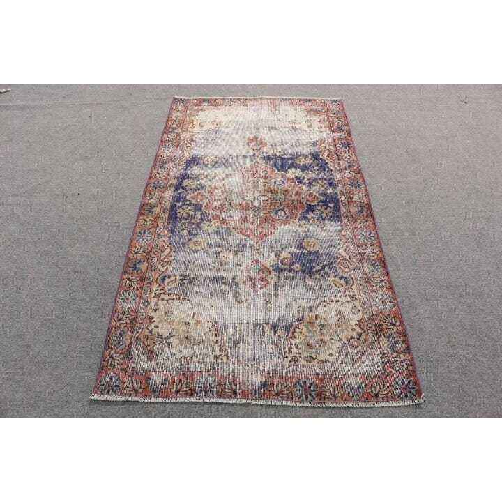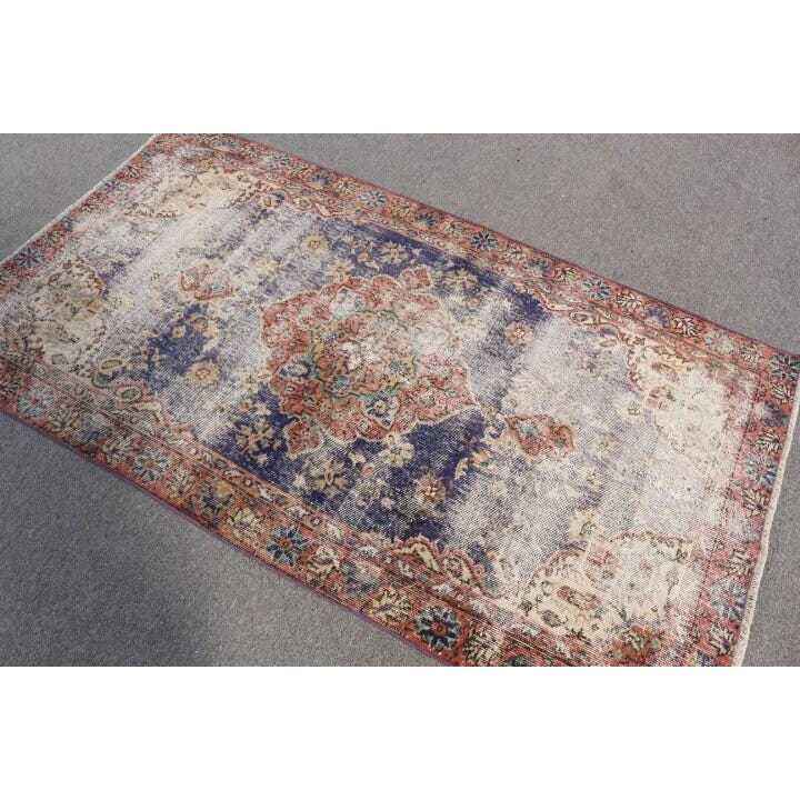 Alfombra Turca de 3.5x6.4 pies, Alfombra Decorativa Vintage, Alfombra con Diseño de Plantas y Árboles Azules