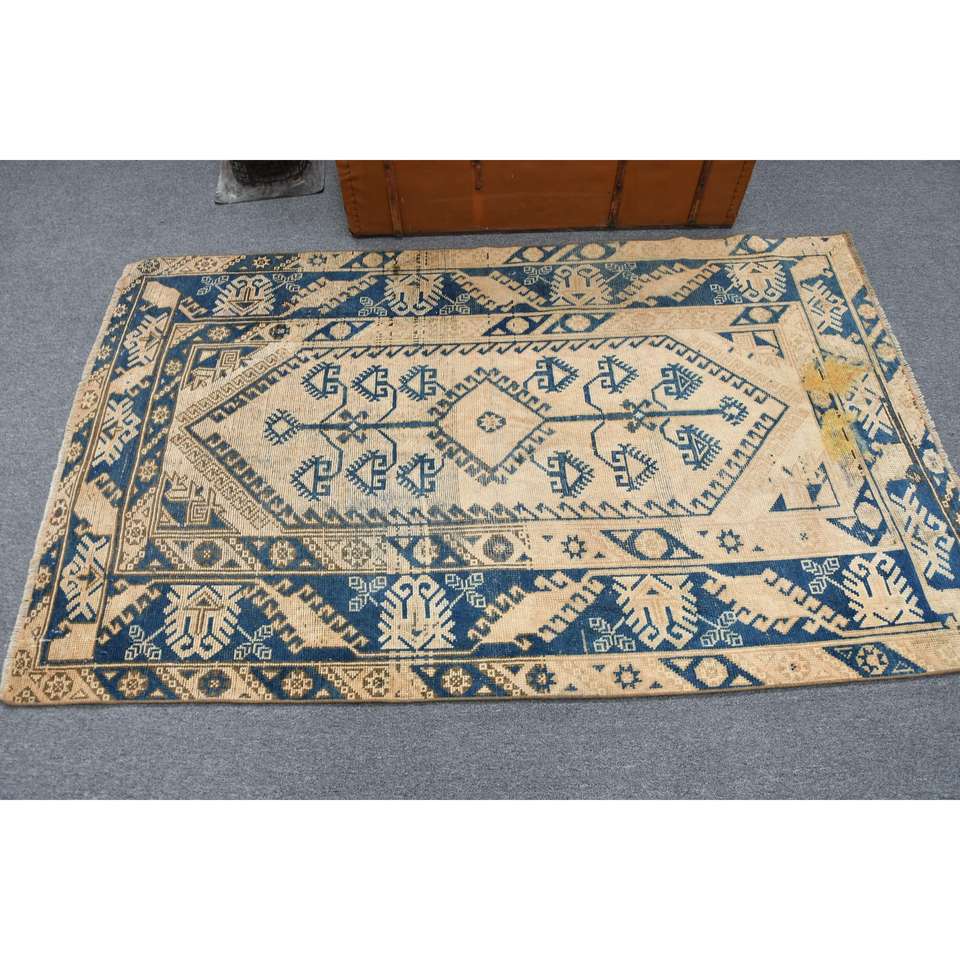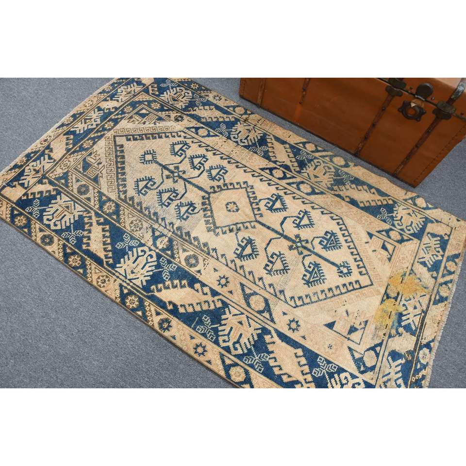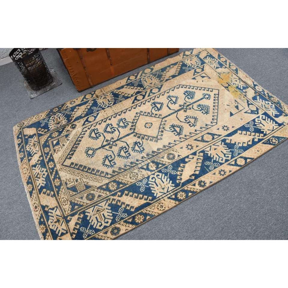 Alfombra Turca de 3.7x6 pies, Alfombra Vintage Decorativa, Alfombra de Lana con Diseño Floral Azul
