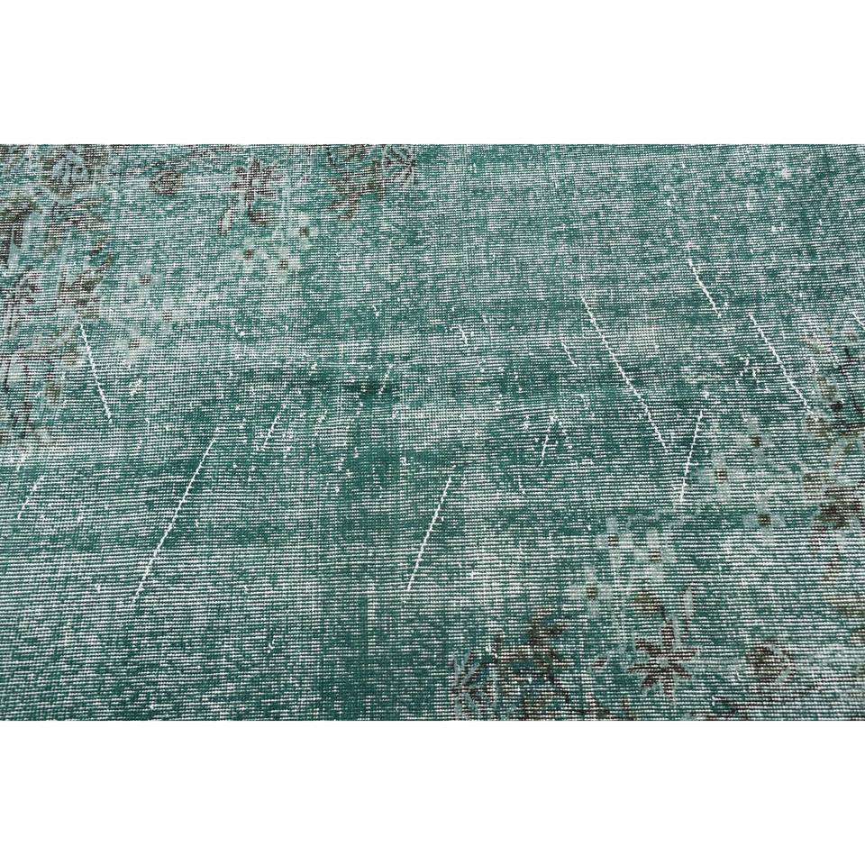 Alfombra Turca de 3.8x6.8 pies, Alfombra Vintage, Alfombra de Lana a Rayas Verde Gris
