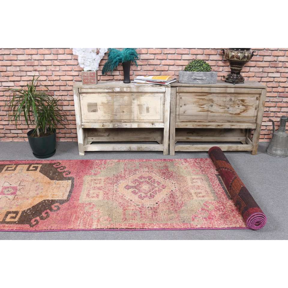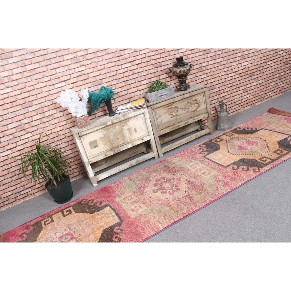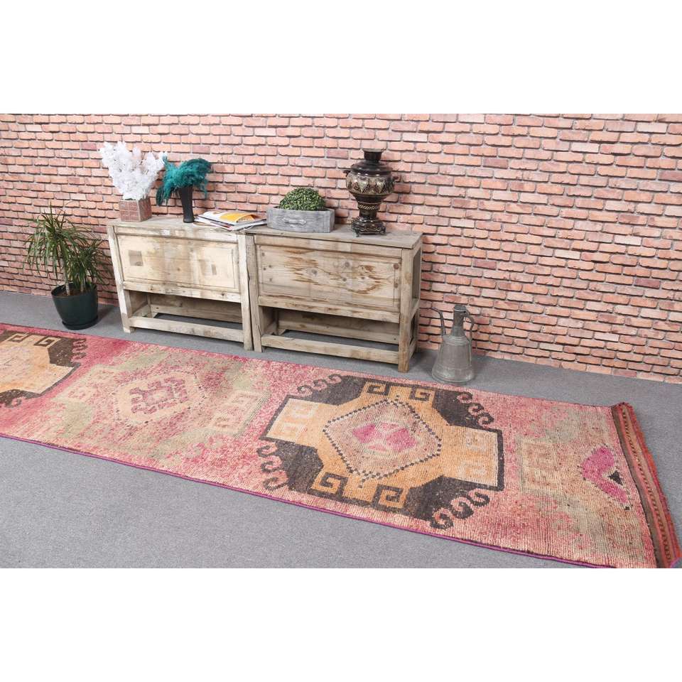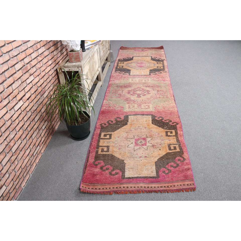Alfombra Turca de 3x11.6 pies, Alfombra Vintage, Alfombra con Estampado Animal Rojo Herki