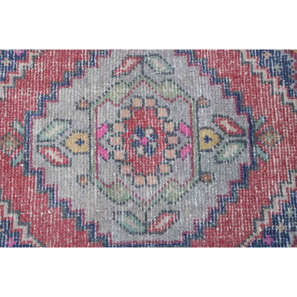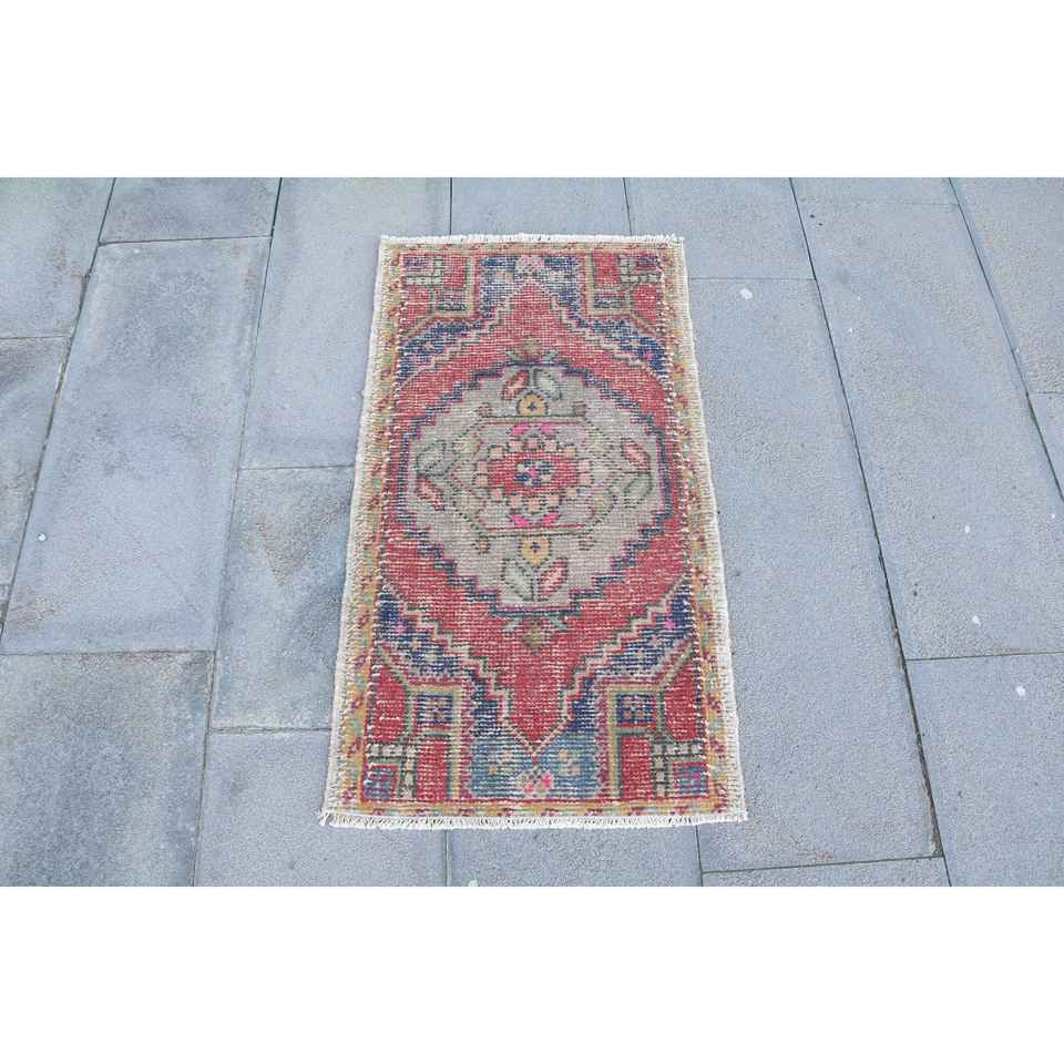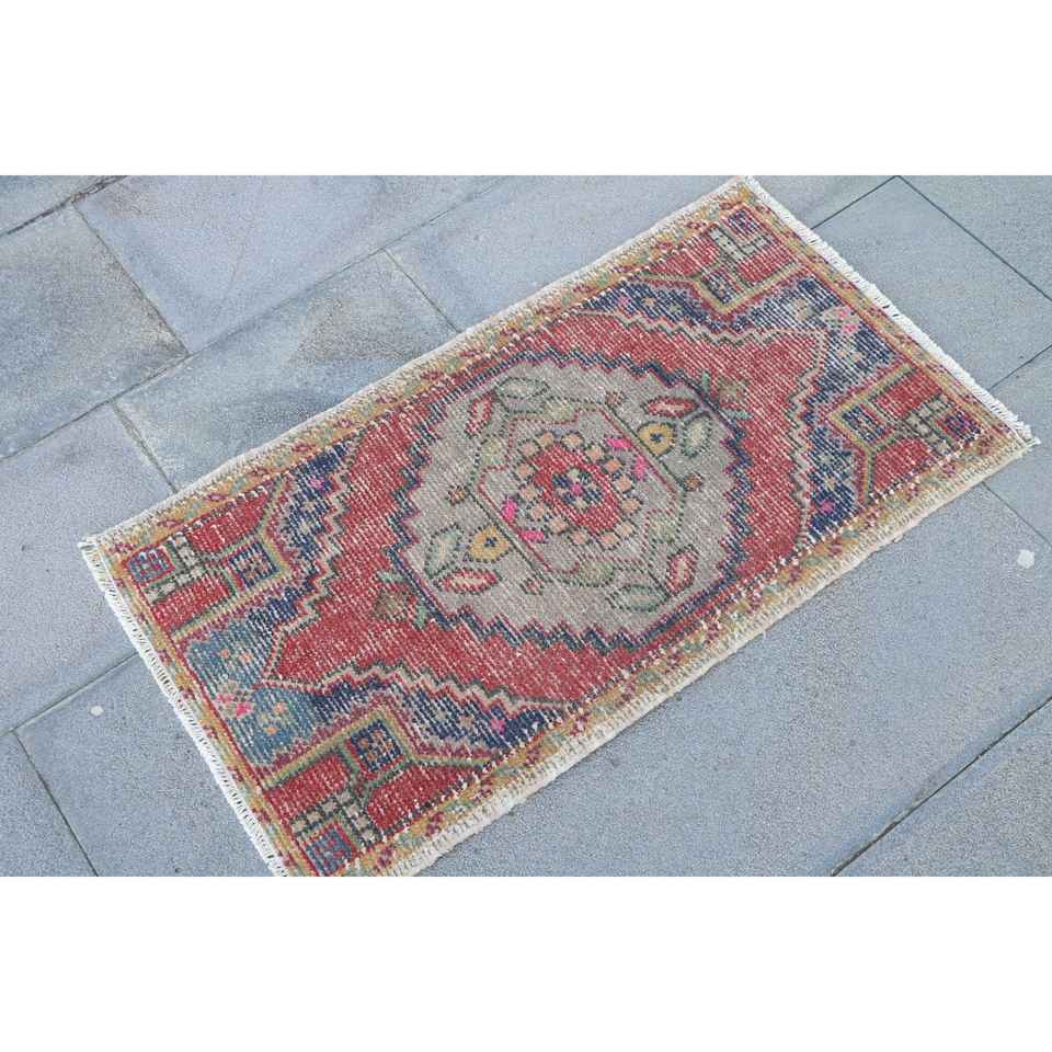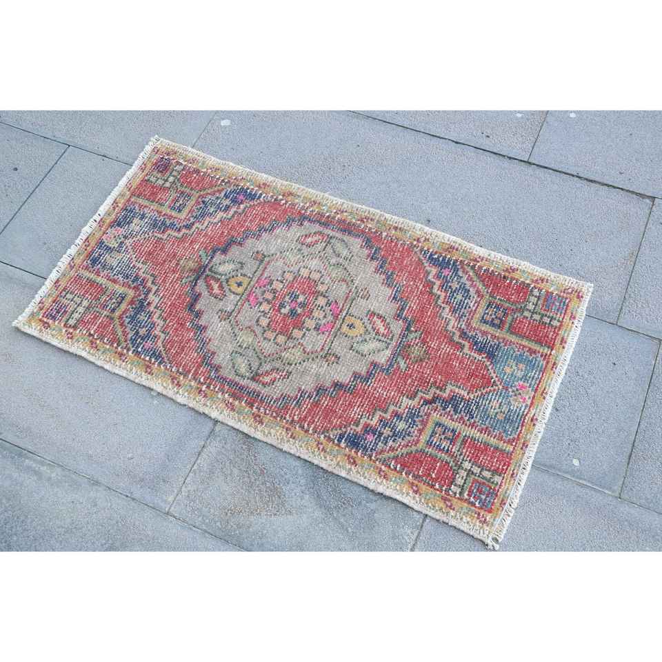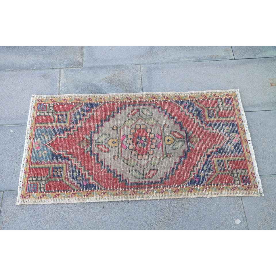 Alfombra Turca de 3x3 pies, Alfombra Pequeña Vintage, Alfombra de Lana con Estampado Animal Rojo