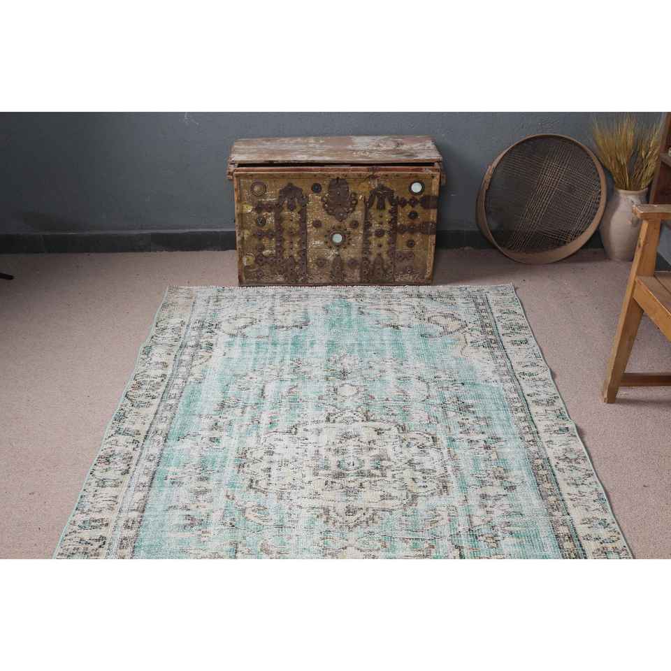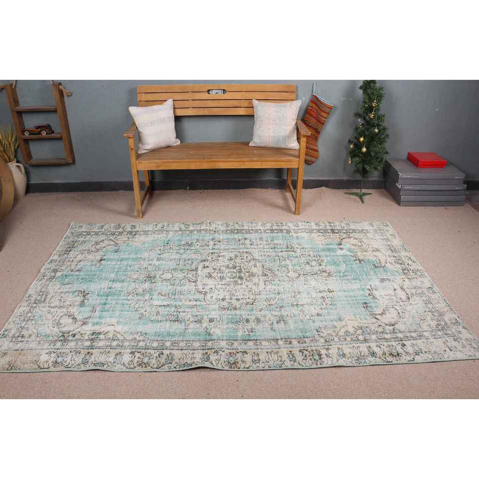 Alfombra Turca de 4.6x7.6 pies, Alfombra Vintage, Alfombra Floral Azul y Blanca