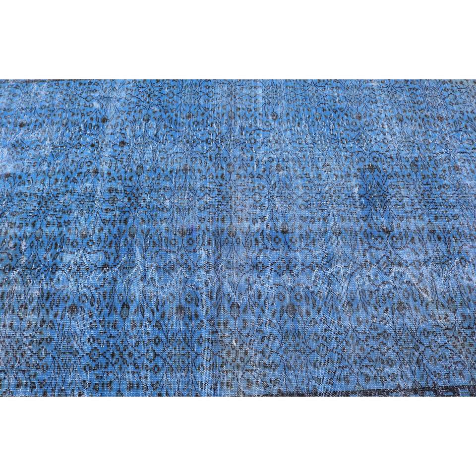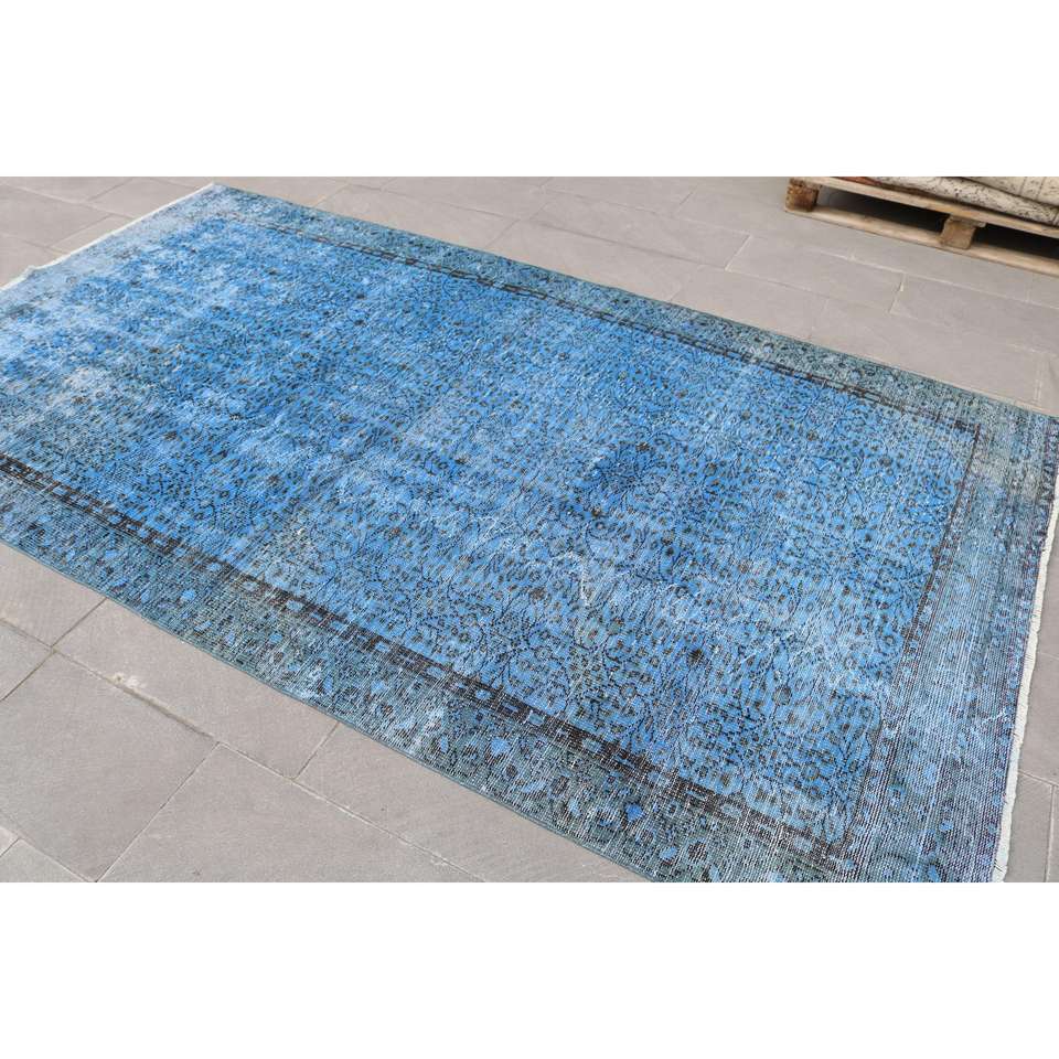 Alfombra Turca de 5.4x9.7 pies, Alfombra Vintage, Alfombra Azul a Rayas de Lana