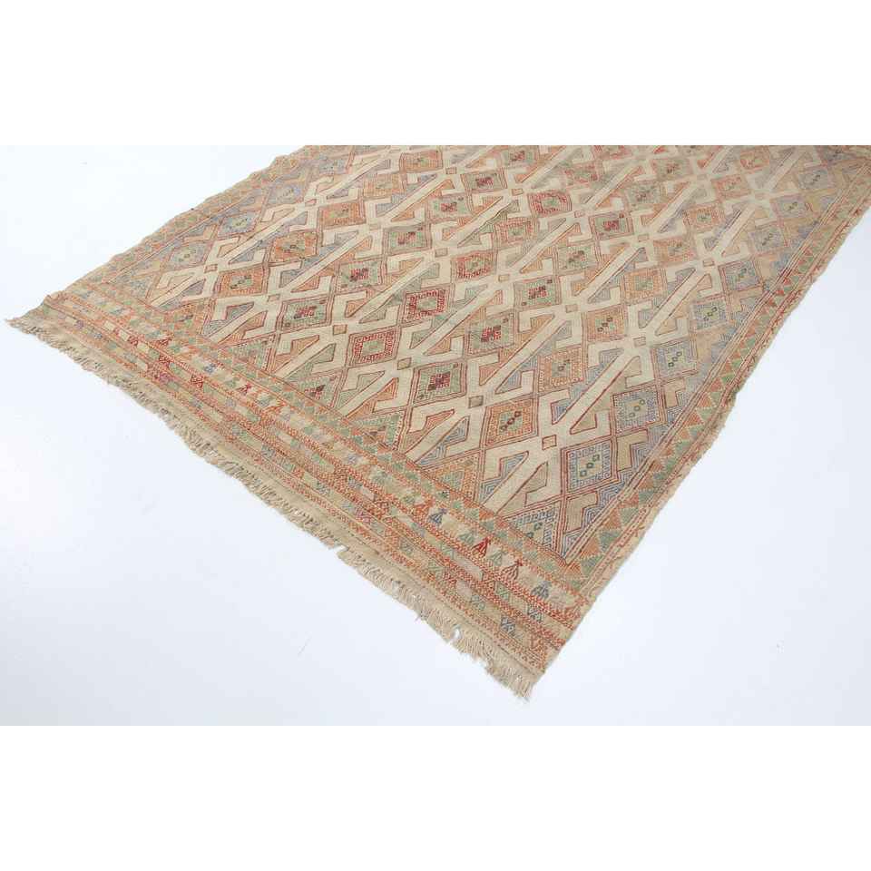 Alfombra Turca de 5.7x8.4 pies, Alfombra Vintage Grande, Alfombra de Lana a Cuadros Marrón Rojizo