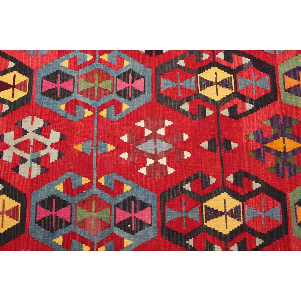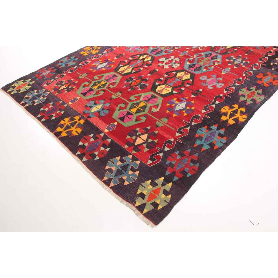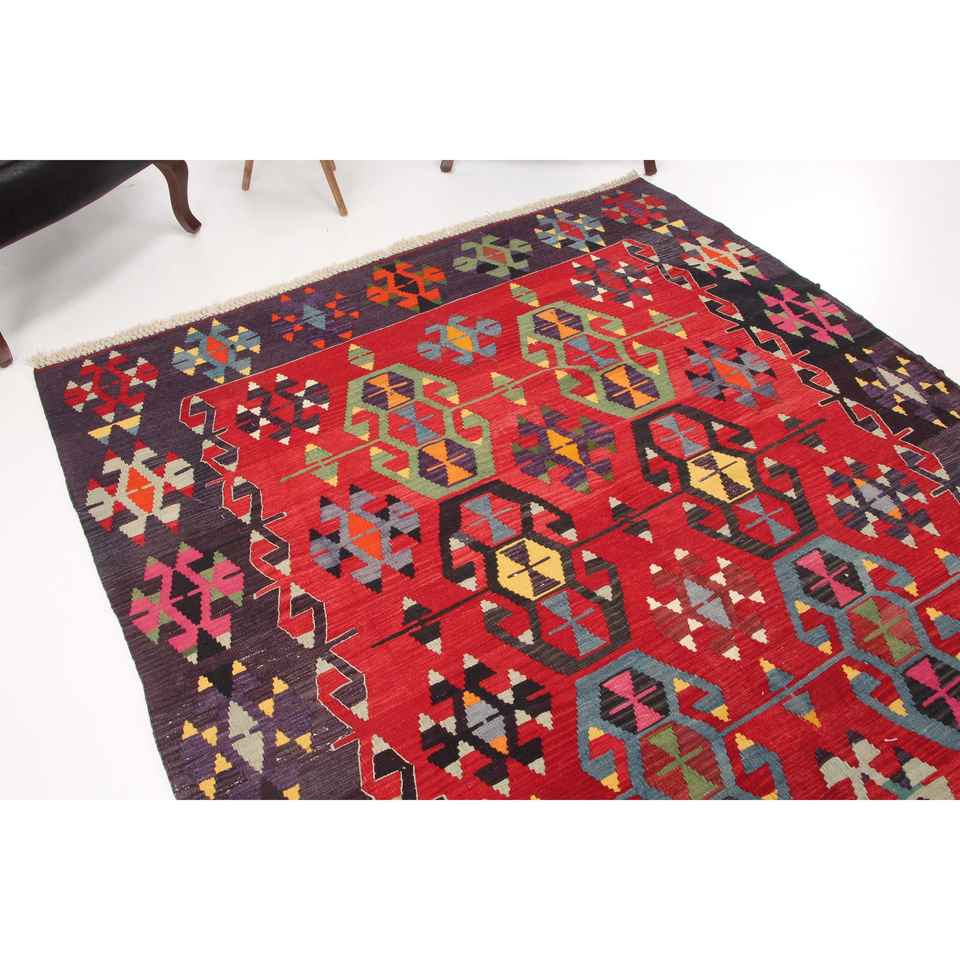 Alfombra Turca de 6.3x10.2 pies, Alfombra Grande Vintage, Alfombra de Lana con Diseño Floral Rojo