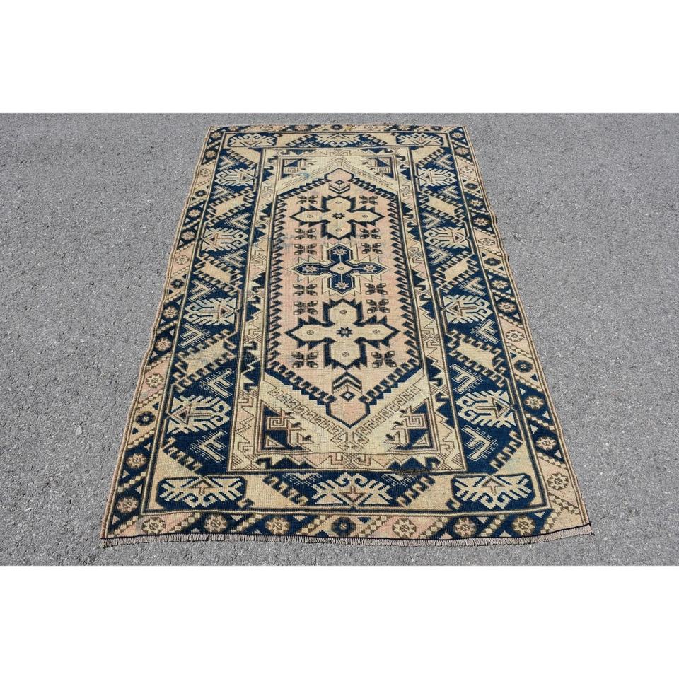 Alfombra Turca con Diseño de Ikat Azul Vintage, 3.9x6.1 pies (120x185 cm)