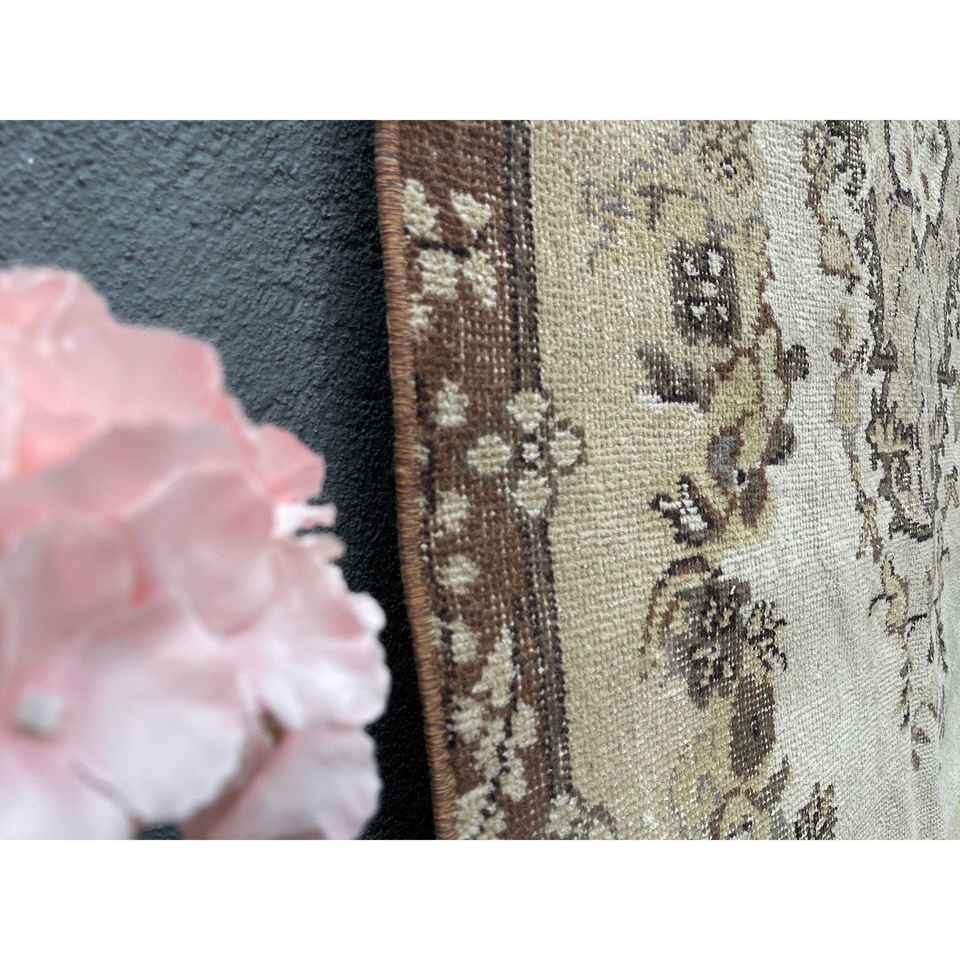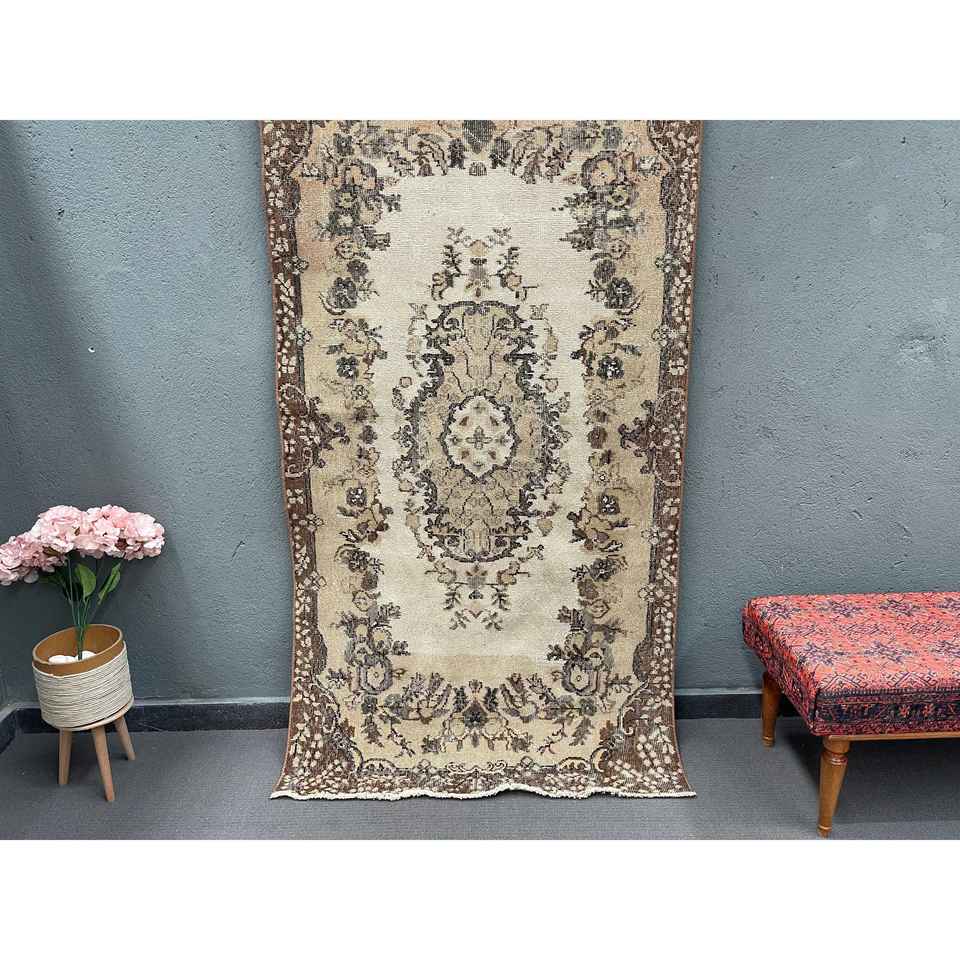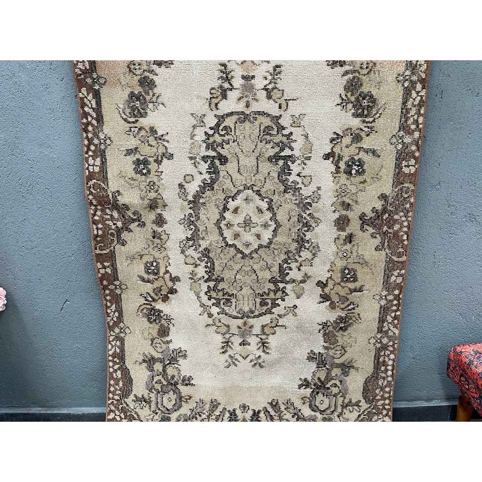 Alfombra Turca de 3.6x6.7 pies (110x204 cm), Alfombra Persa Vintage de Lana Marrón