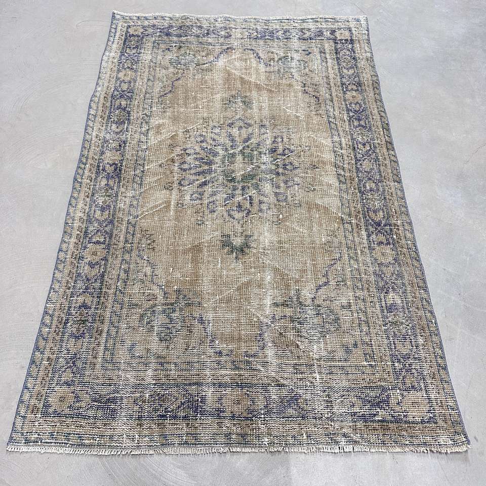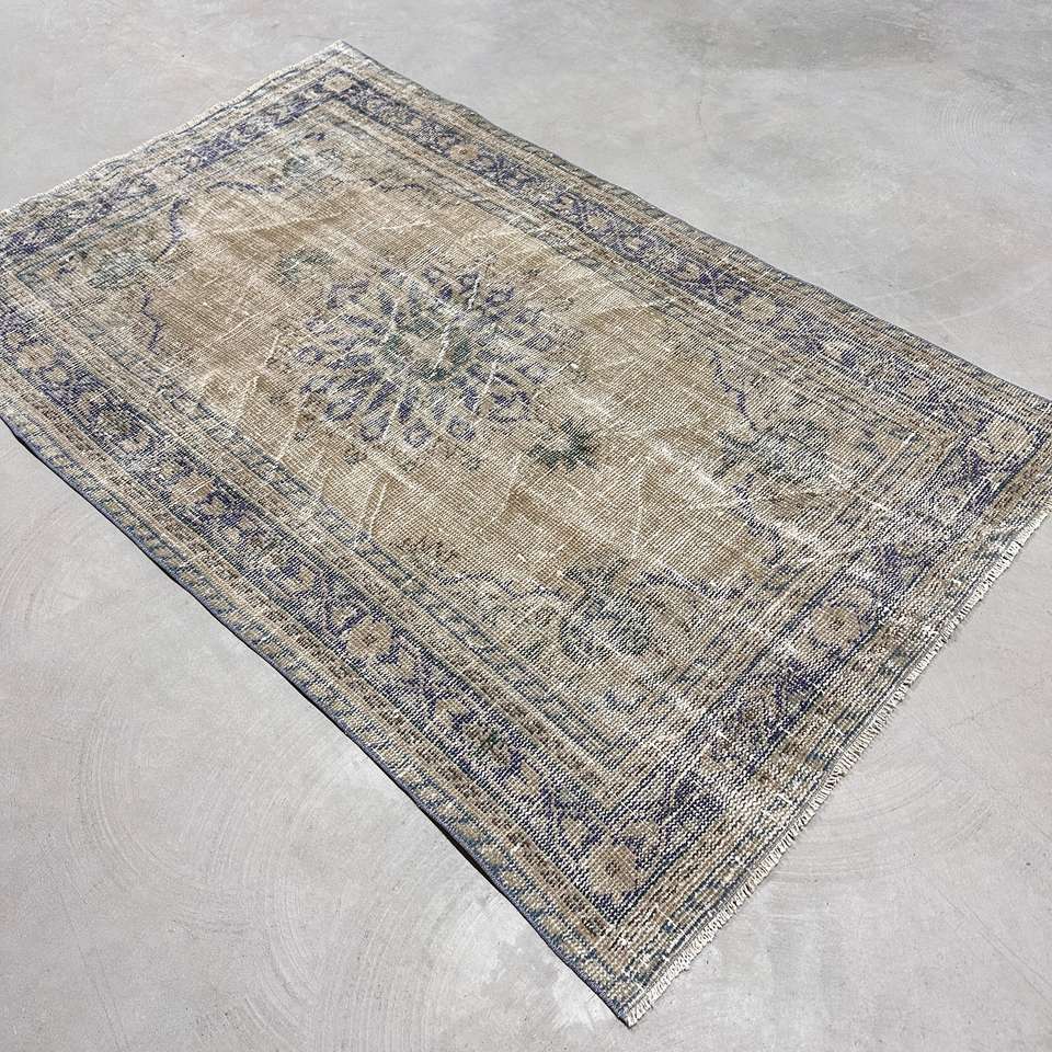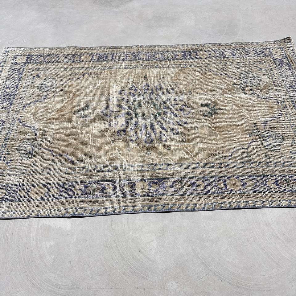 Alfombra Turca, Alfombra Vintage de 4.1x6.5 pies, Alfombra de Lana Azul