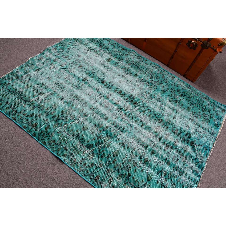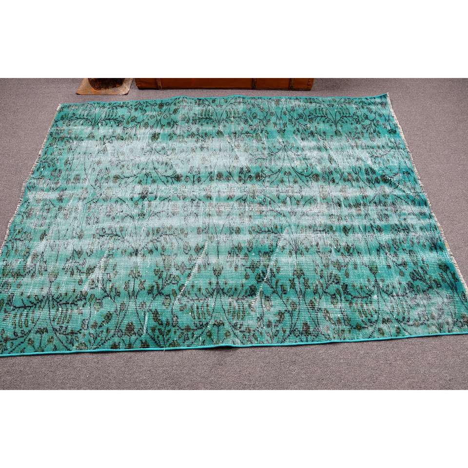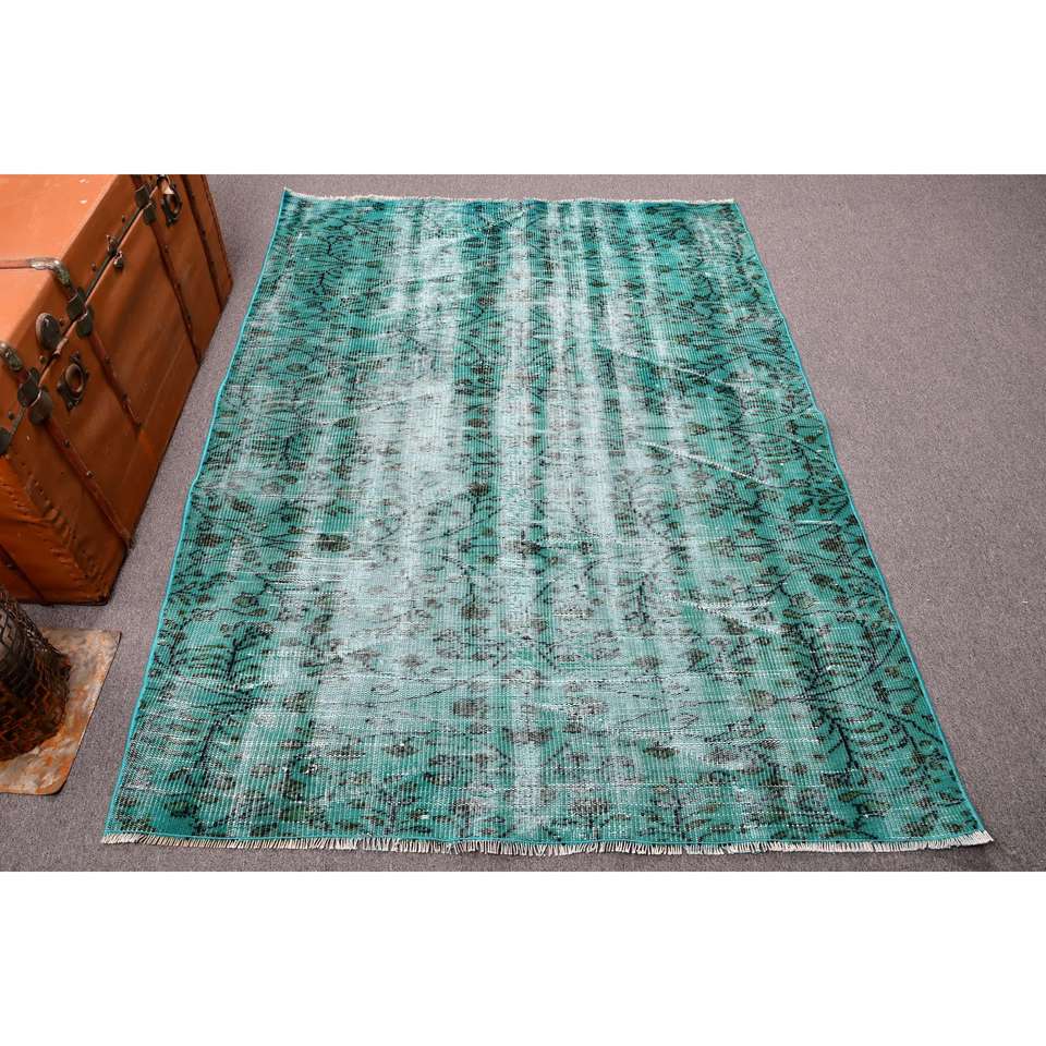 Alfombra Turca de 4.4x5.9 pies, Alfombra Azul Verde del Suroeste de Estados Unidos, de Lana