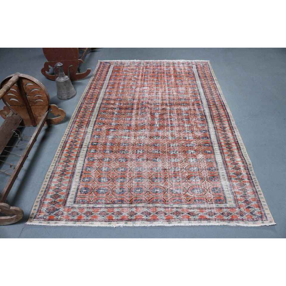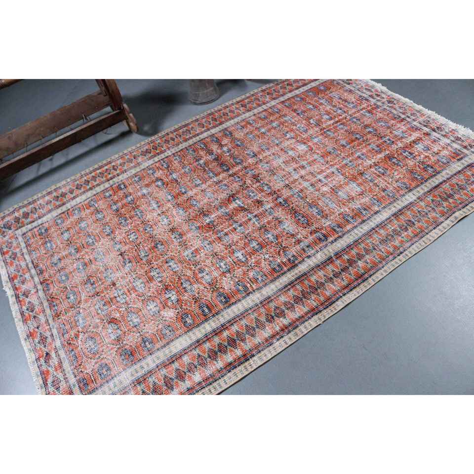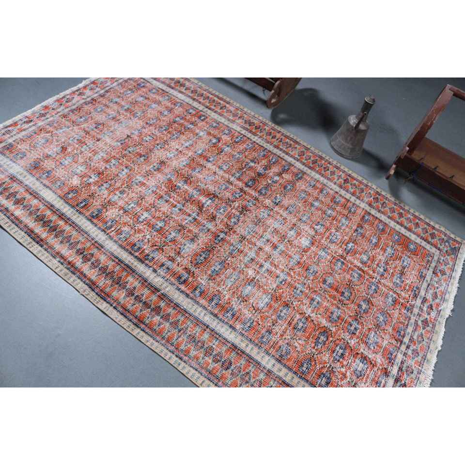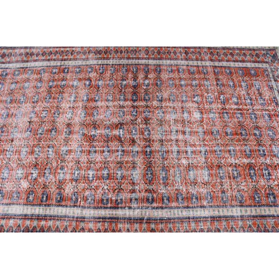 Alfombra Turca de Lana de 4.7x7.5 pies, Color Rojo y Azul Degradado
