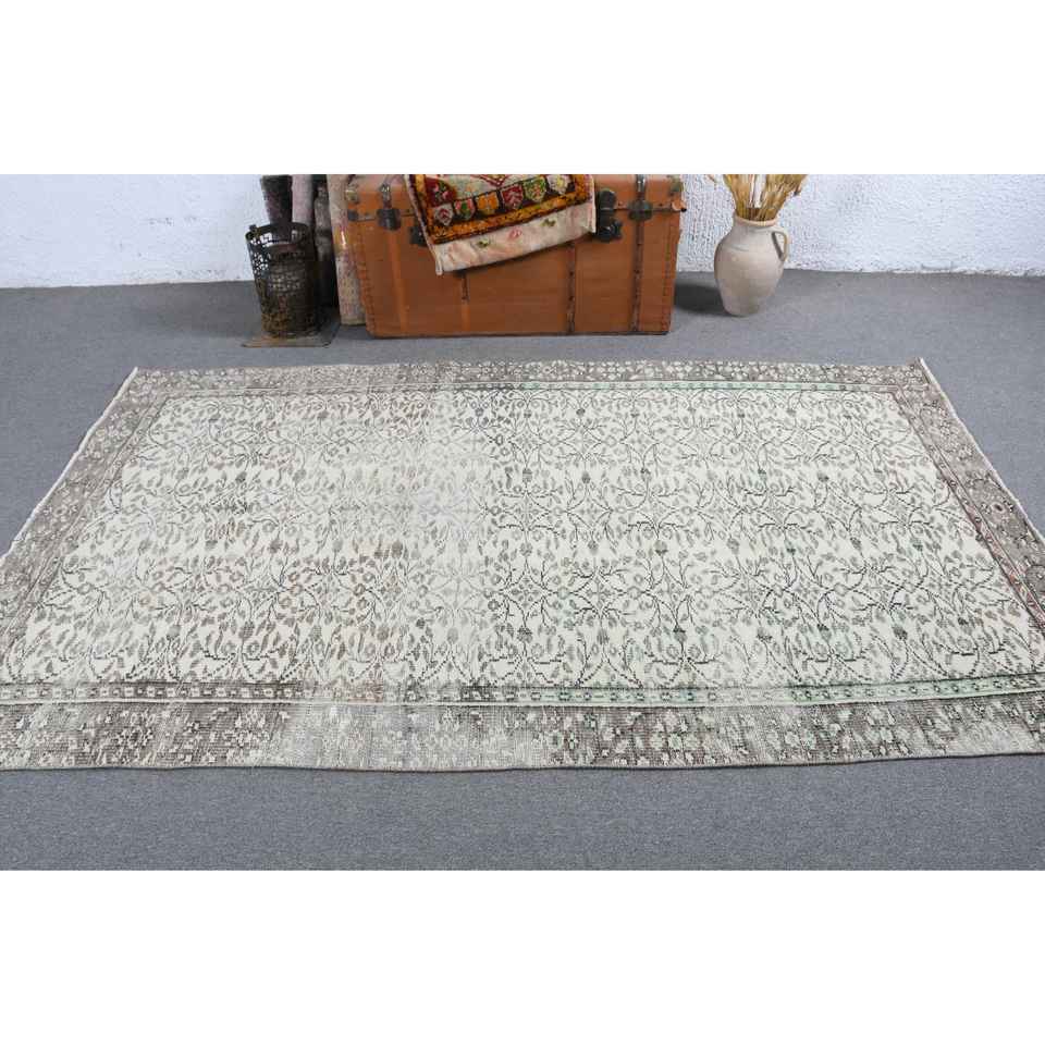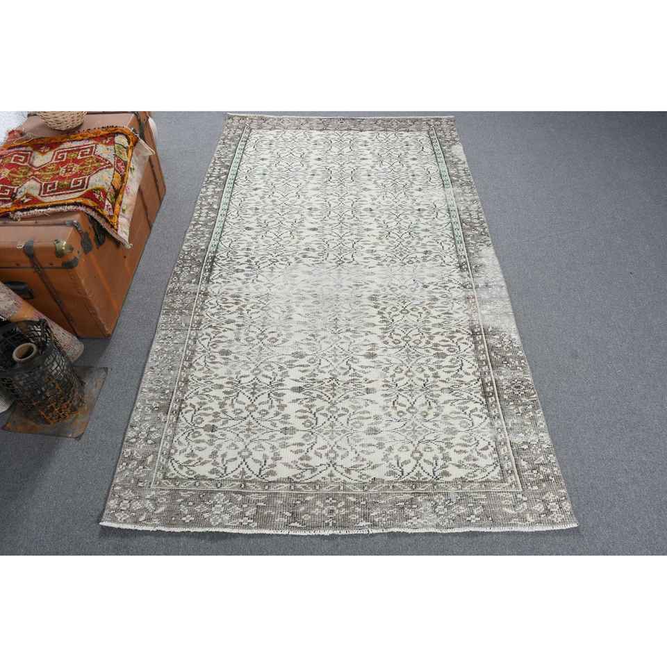 Alfombra Turca, Alfombra Vintage de 5.1x4.8 pies, Alfombra de Lana Gris