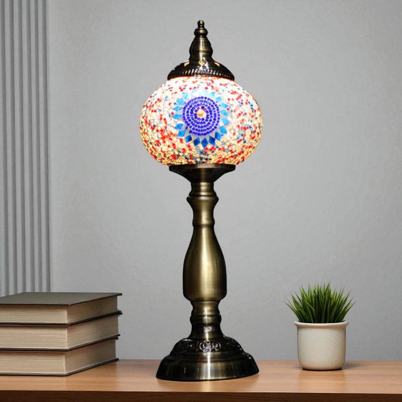 Lámpara de mesa de cristal multicolor hecha a mano de Arte Turco, luz de escritorio moderna LED Simple, decoración interior de peso ligero